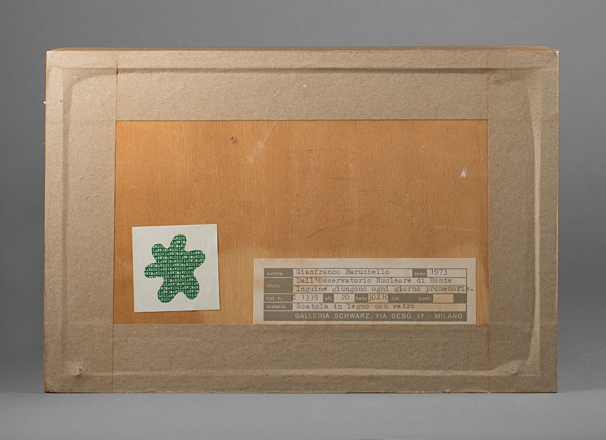 Titolato, firmato e datato in basso al centro:Dall'osservatorio nucleare di Monte Inguine giungono ogni giorno promemoria, Baruchello 1973