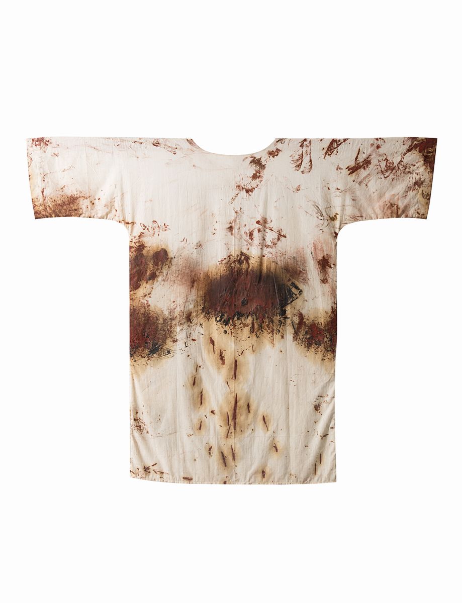 olio e sangue su camicia di tela