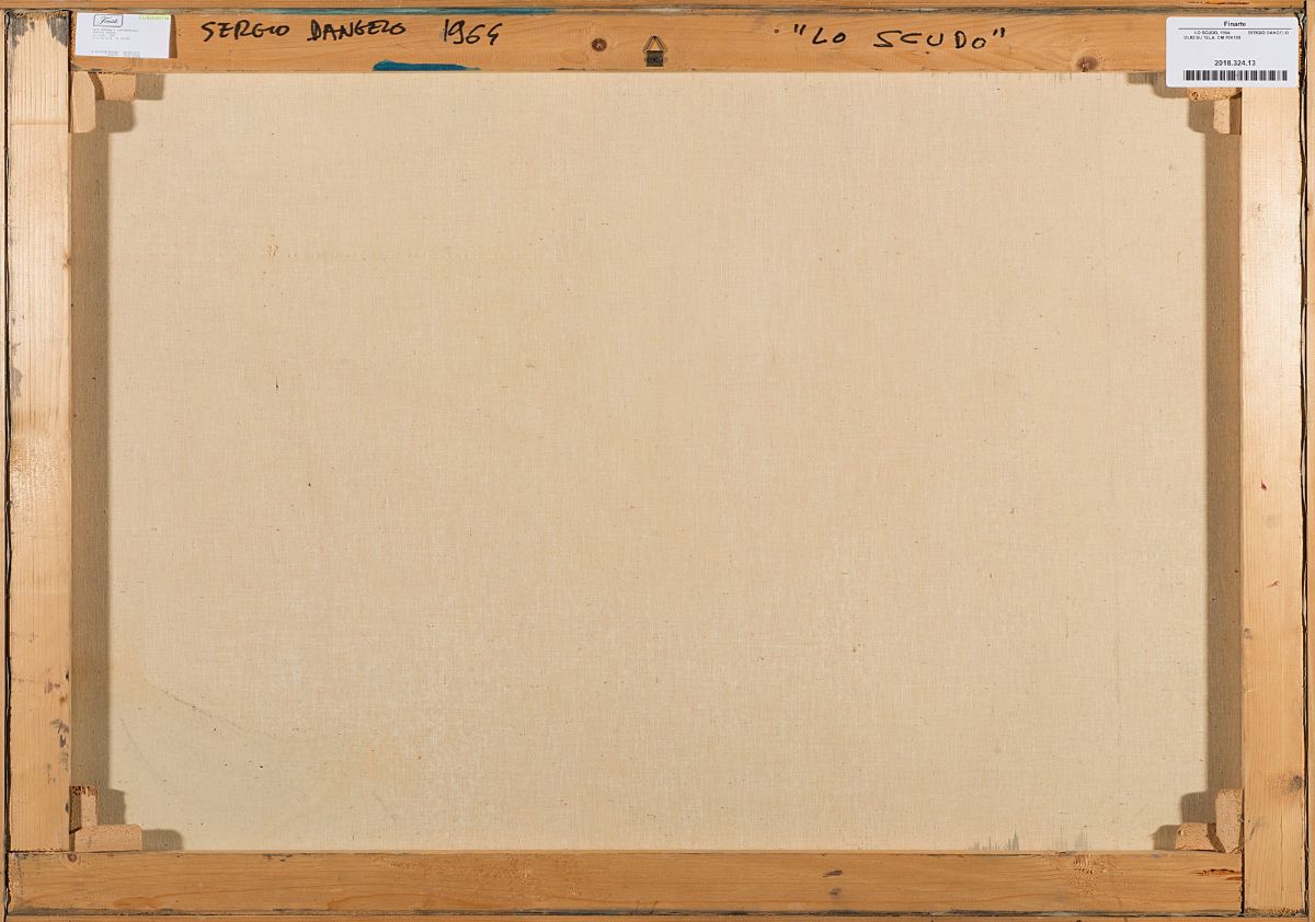 Firmato, datato e titolato al verso: Sergio Dangelo "Lo scudo" 1964