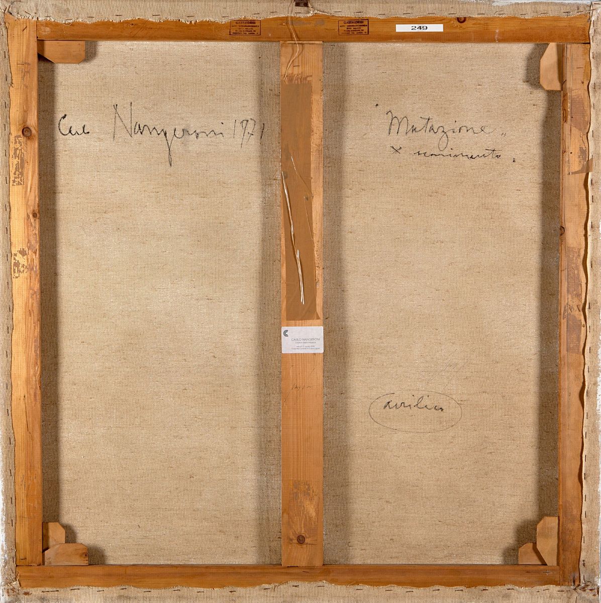 Firmato, datato e titolato al verso: Carlo Nangeroni, 1971 "Mutazione per movimento"