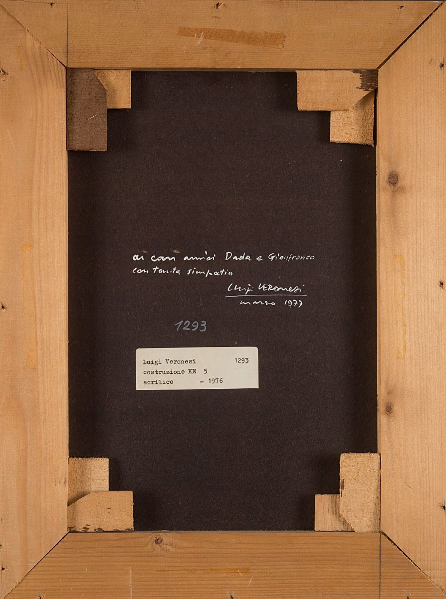 Firmato e dedicato al verso: Ai cari amici Dada e Gianfranco con tanta simpatia. Luigi Veronesi marzo 1977