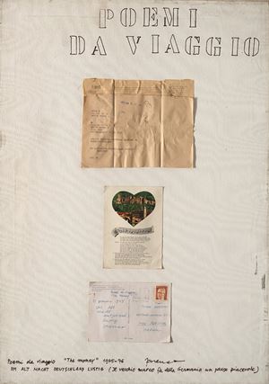 Titolato, datato e firmato in basso: Poemi da viaggio "The Money" 1975 -76, Sarenco