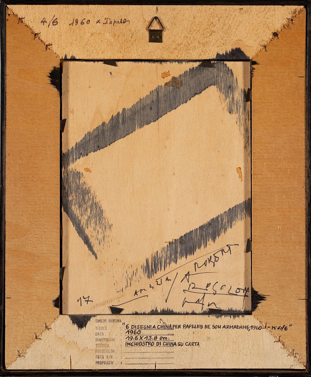 Opera accompagnata da autentica su fotografia a cura dell'Archivio Emilio Vedova e firmata dall'Artista con il n. 714 rilasciata in data 18 aprile 2002.