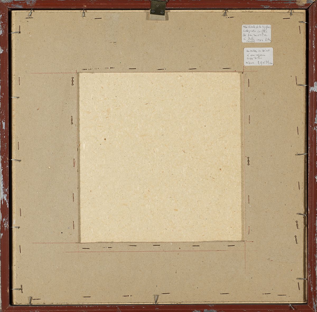 Iscrizione parzialmente leggibile in basso verso destra: Alla cliente della bigiotteria Codognato coiffee de la montre a Dalì, Venice 1964 R. Hains