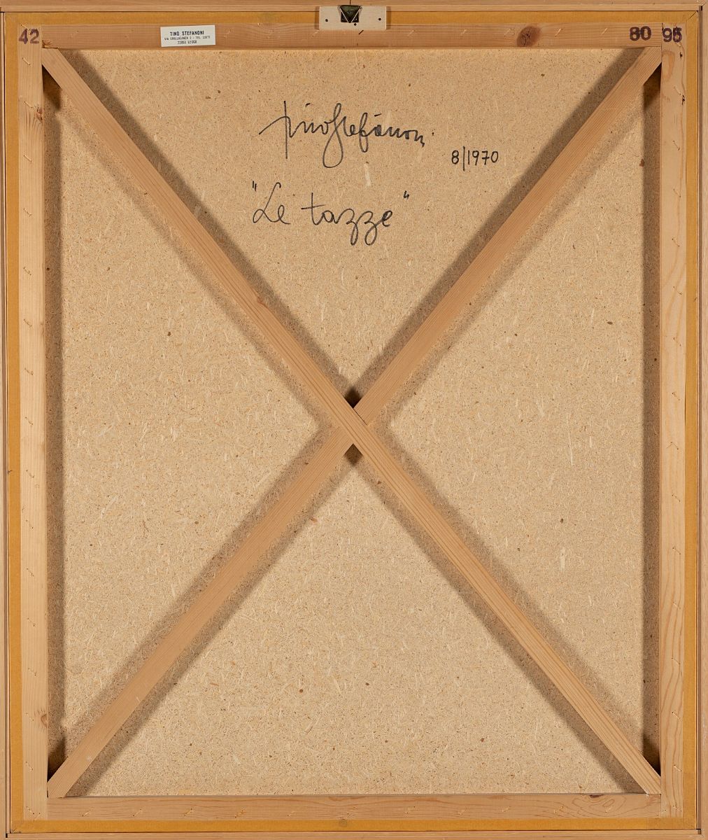 Firmato, datato e titolato al verso: Tino Stefanoni, 8/1970 "Le tazze"