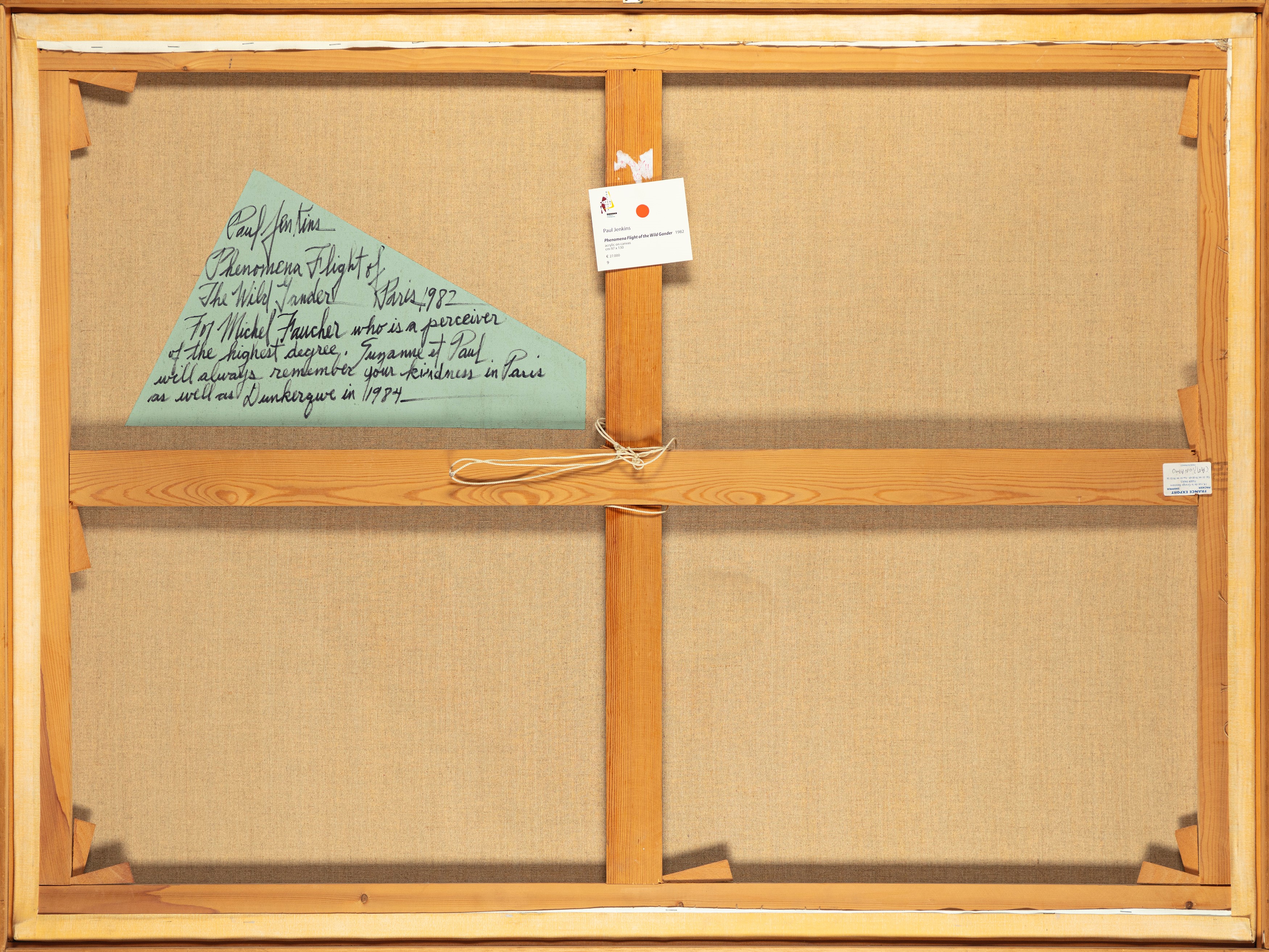 Firmato, titolato e datato al verso: Paul Jenkins Phenomena Flight of the Wild Gander, Paris 1982