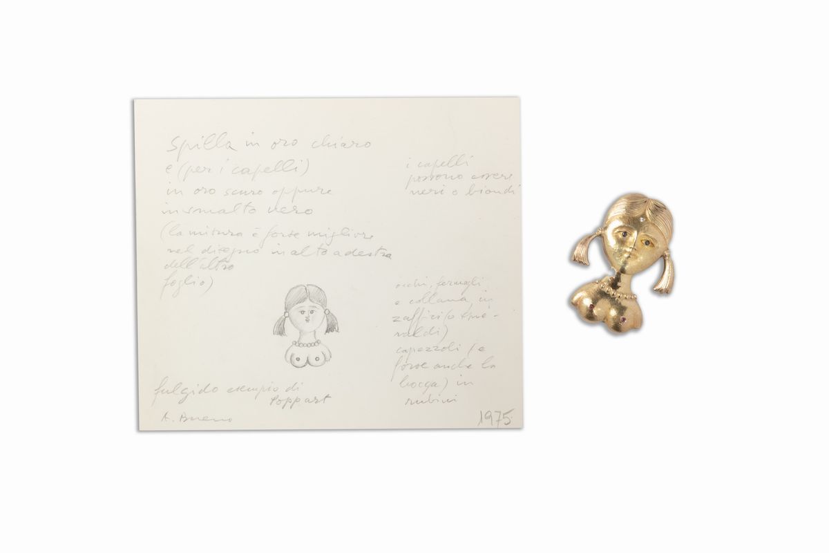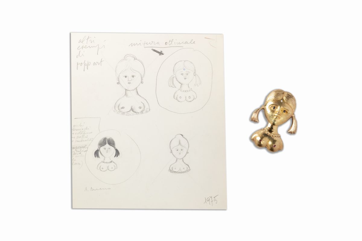 L'opera è accompagnata dal disegno preparatorio eseguito a grafite su carta, con descrizioni autografe per la realizzazione, firmato in basso a destra: A.Bueno, datato in basso a destra: 1975, e recante al verso il timbro del Museo Torrini, Firenze