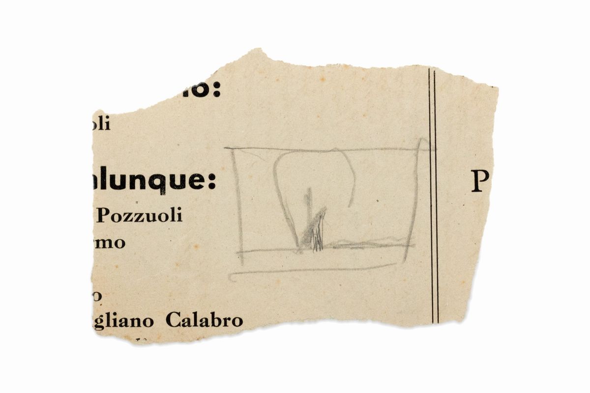 due piccoli disegni, grafite su carta di giornale