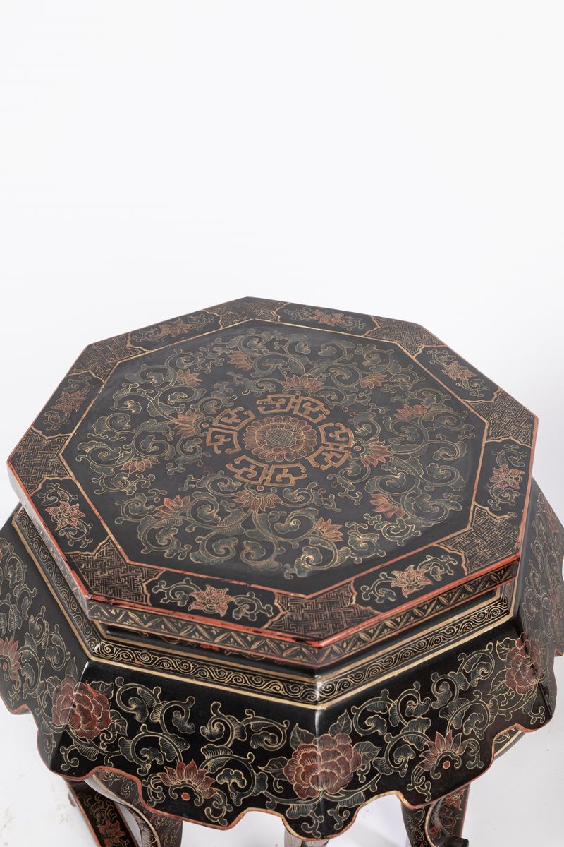 (con basi in legno laccate e riccamente decorate a motivi floreali e fogliacei)