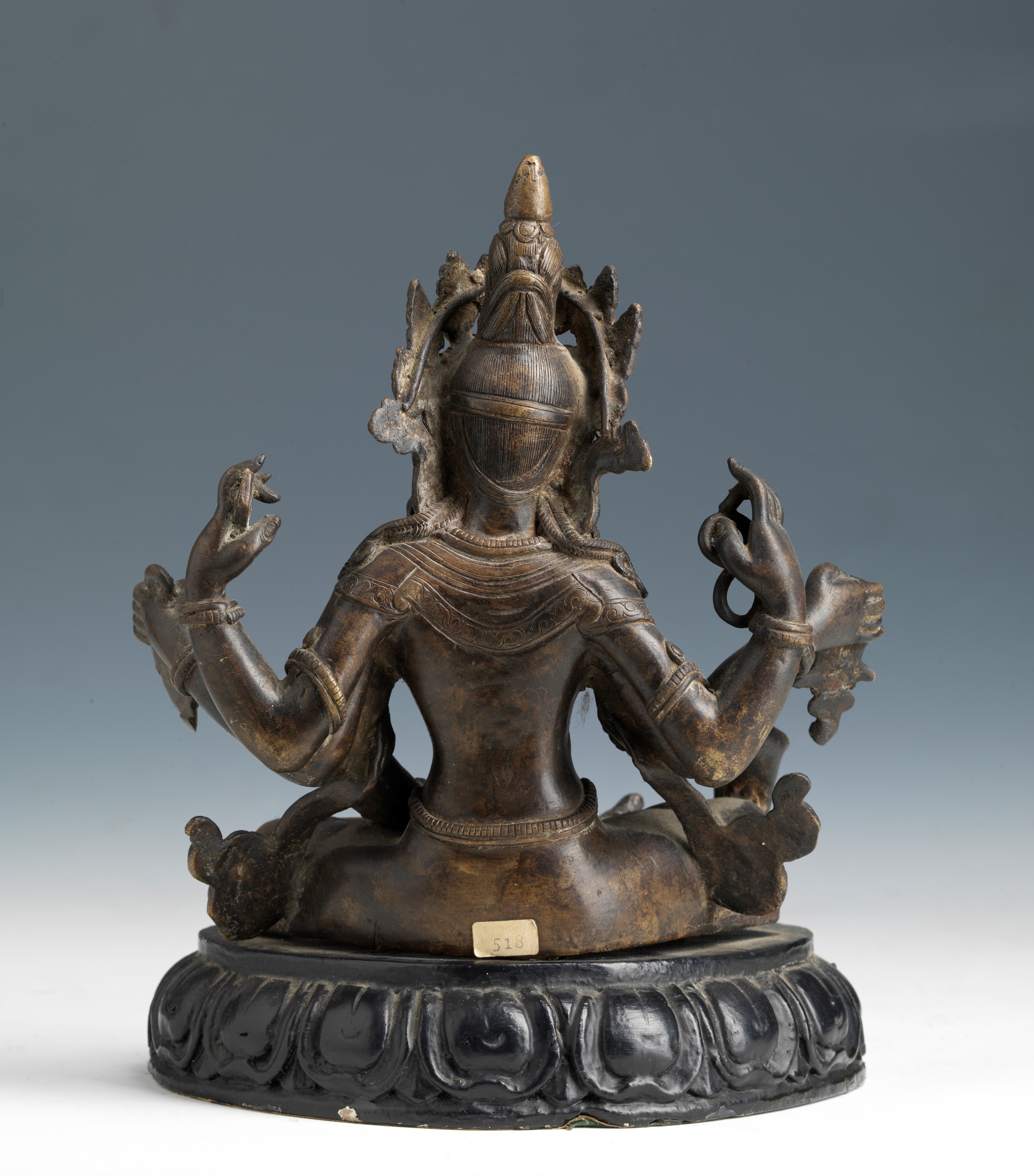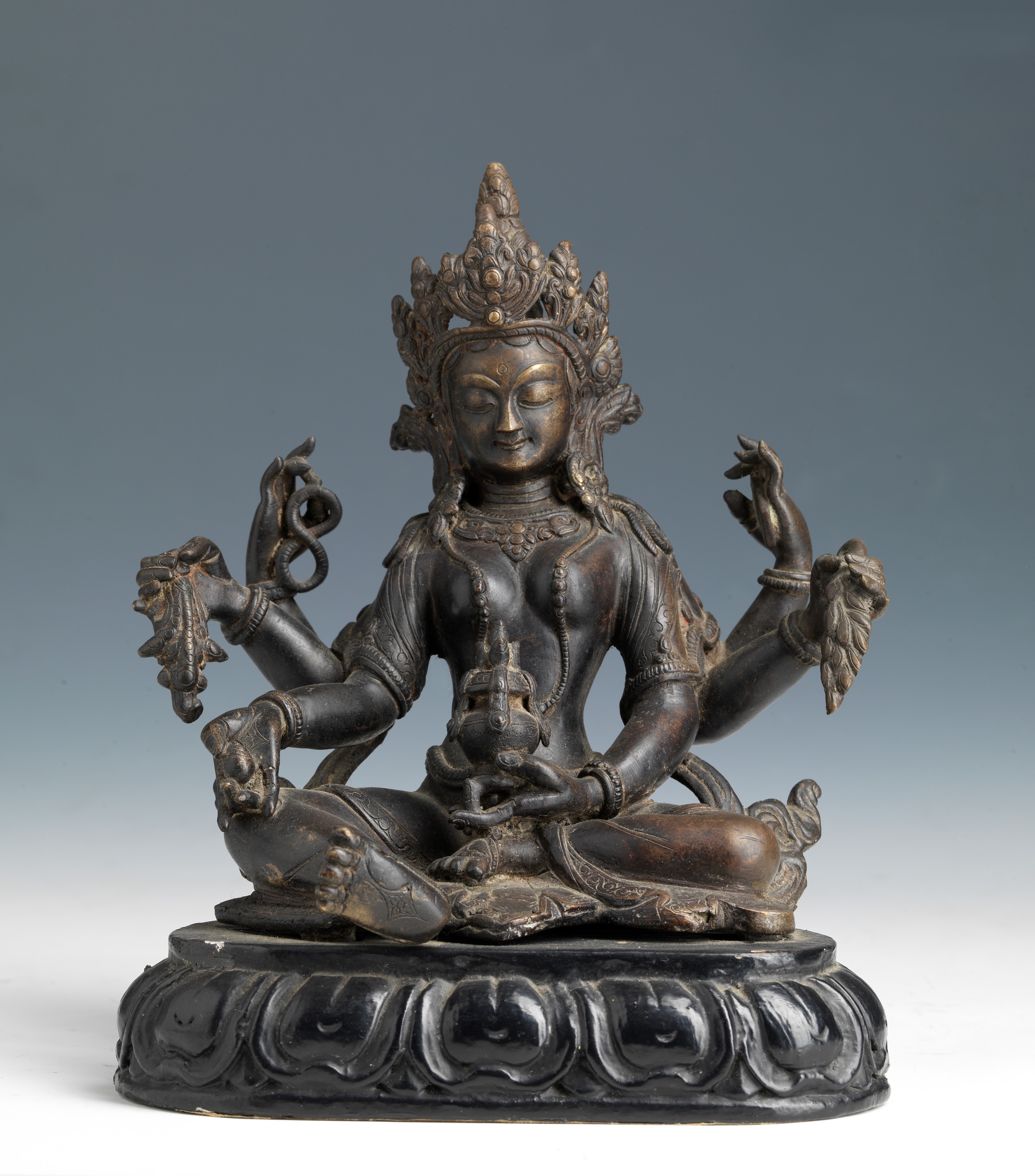 Scultura in bronzo a patina scura raffigurante Vasudhara . Tibet, secolo XIX