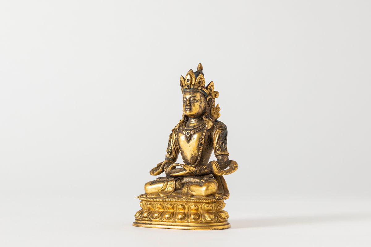 鎏金青铜双莲花座佛像,西藏,19世纪