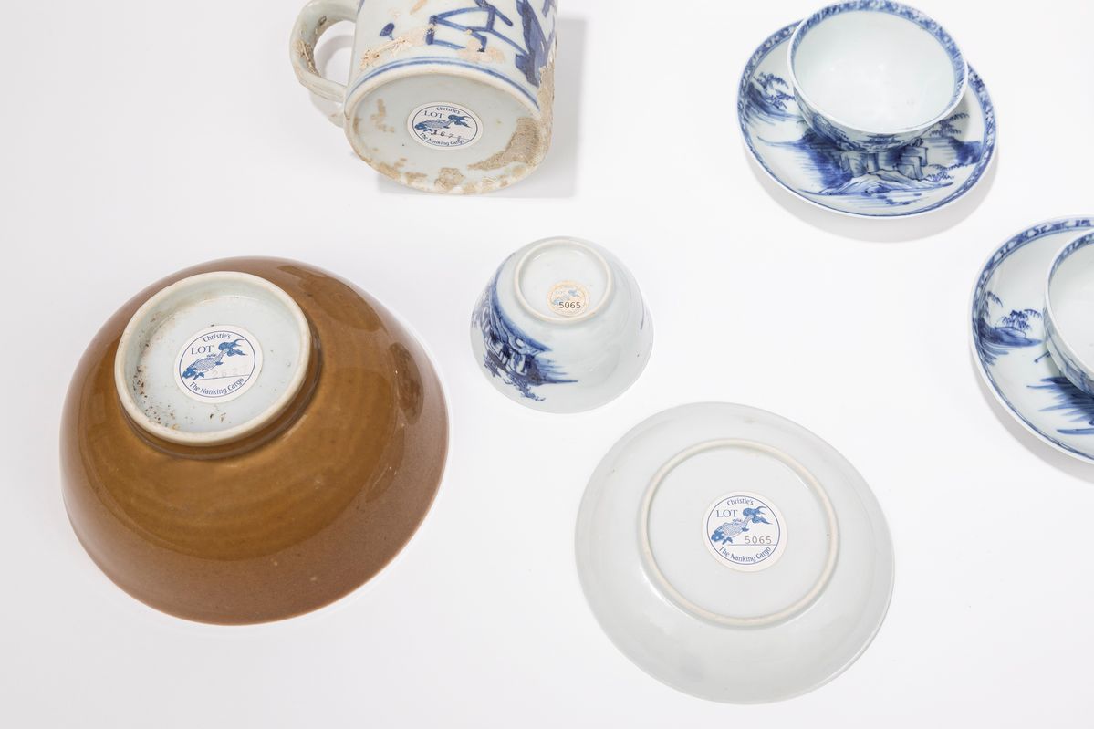 Composta da sei piattini con tazzine, una ciotola e un boccale; tutti recano etichetta Nanking Cargo Christie's Amsterdam.
