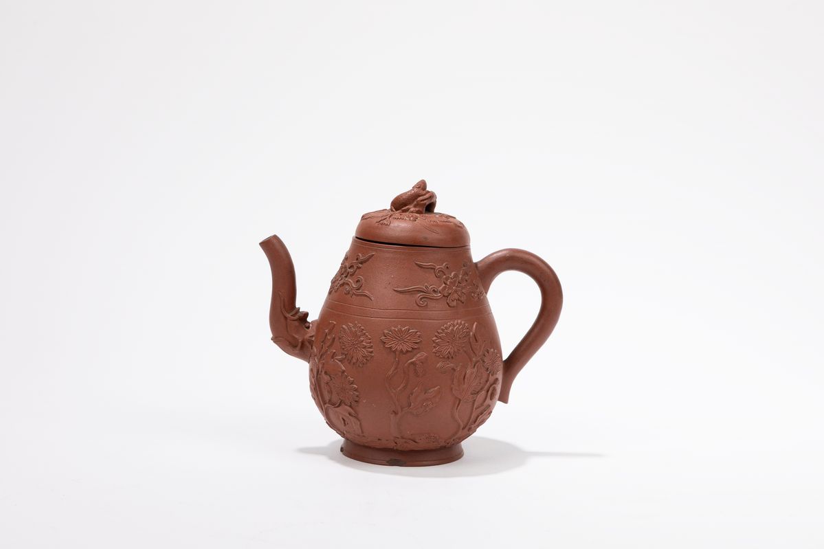 Dal corpo piriforme, è finemente intagliata con motivi floreali.