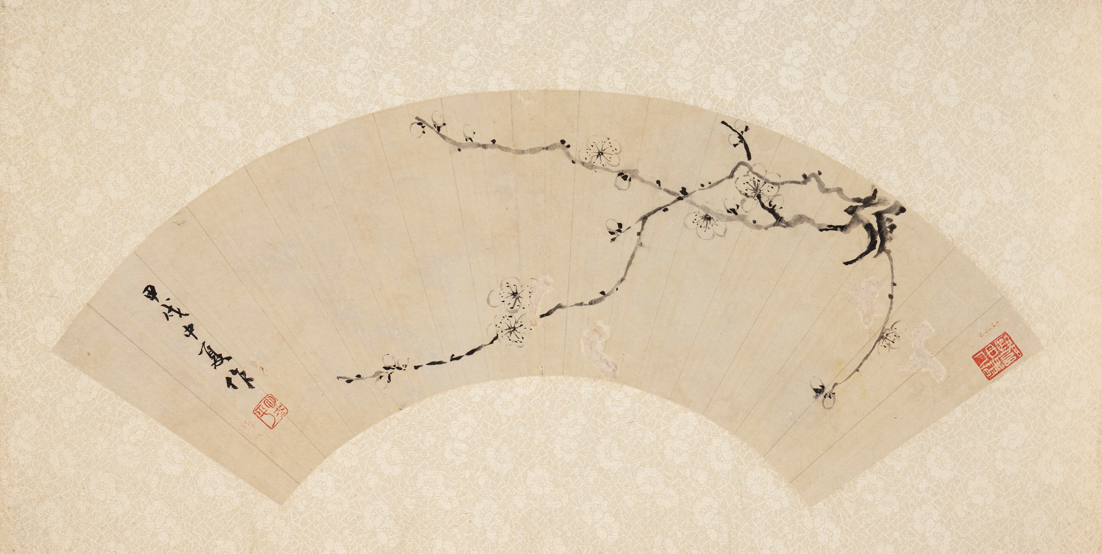 raffiguranti motivi floreali e paesaggio con pagode.