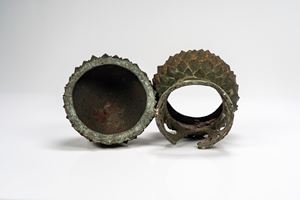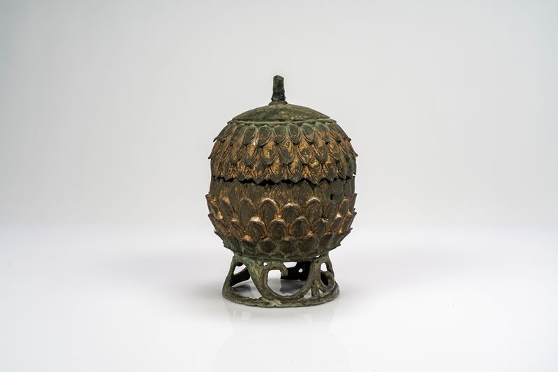 Contenitore in bronzo con coperchio, con tracce di doratura e a forma di pigna. Cina, dinastia Qing (1644–1911)