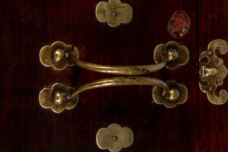 木制旅行盒,内带镜子和两个小抽屉,双提手,中国