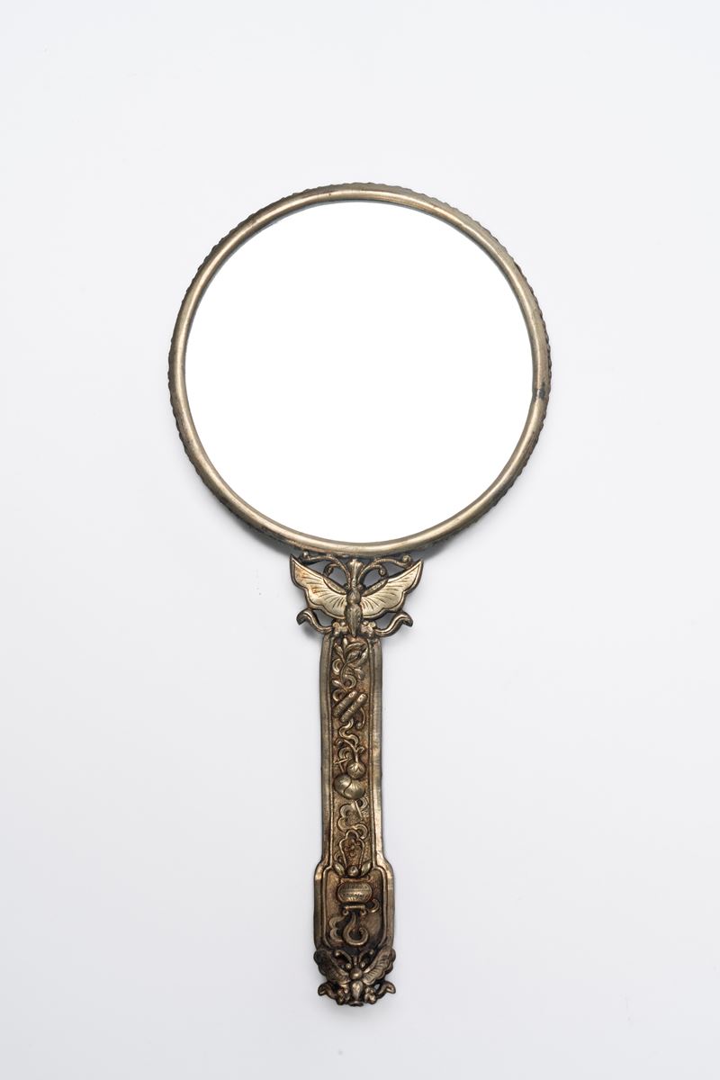 Specchio in argento, giada e smalti, Cina, tarda dinastia Qing / periodo della Repubblica