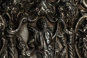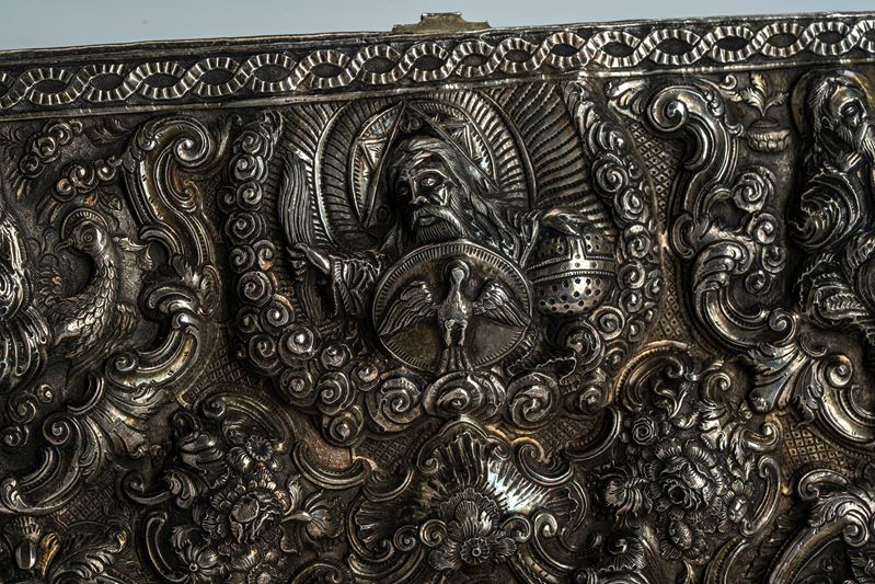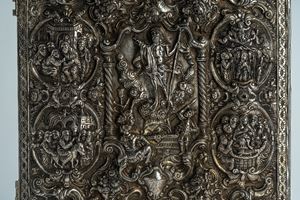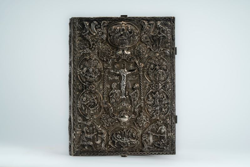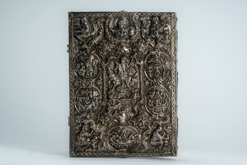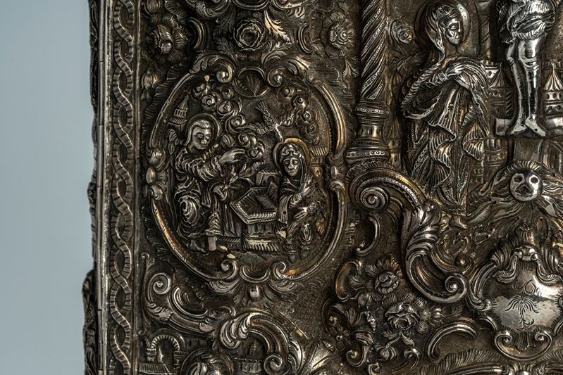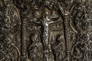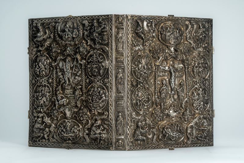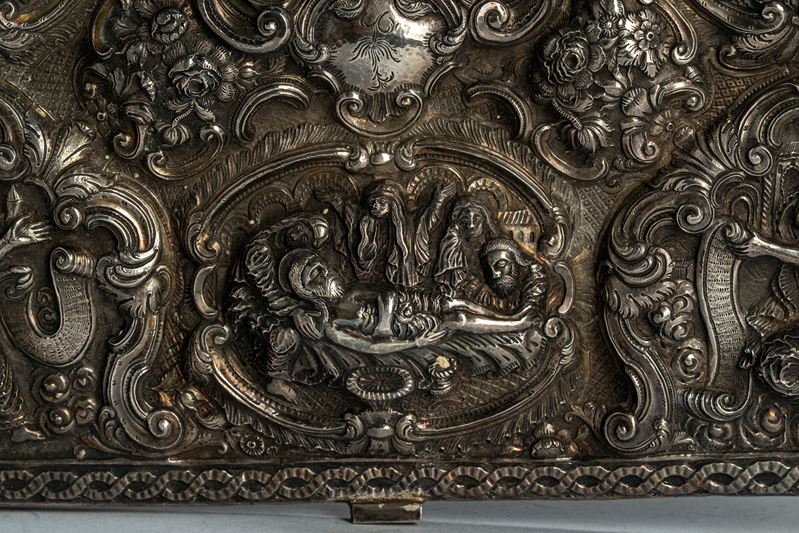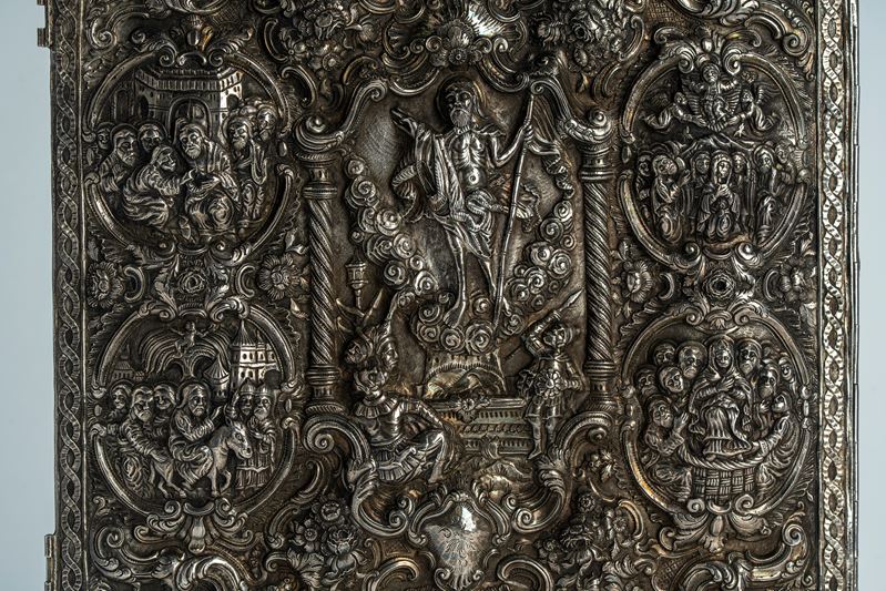 Sul fronte la Crocifissione, al retro la Resurrezione tra scene della vita di Cristo. Non sono apparentemente visibili punzoni.