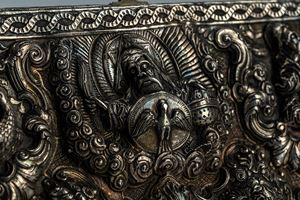 Icona su tavola con riza in argento raffigurante la Vergine di Kazan. Russia, 1908–1926