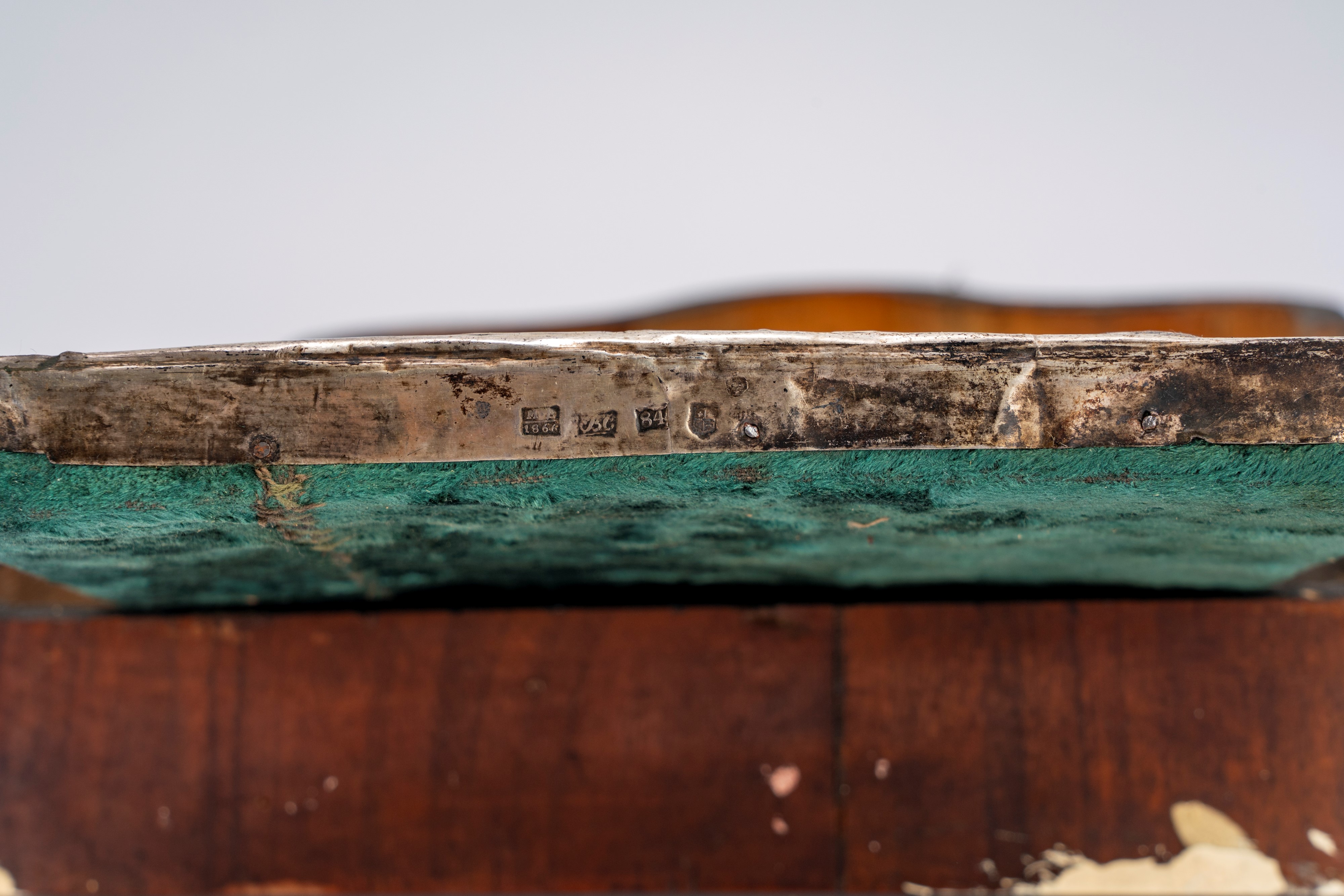 Riza riccamente sbalzata e cesellata con fondo a volute di foglie e fiori. Il panneggio è reso realisticamente nelle pieghe e nei decori. Reca punzone “BC” in corsivo, probabilmente dell’argentiere Vasily Semyonov (?), punzone dell’assaggiatore parzialmente abraso “M.A” datato 1866, “84” zolotniki e punzone della città, forse di Kostroma (scudo quadripartito con croce e falce di luna).