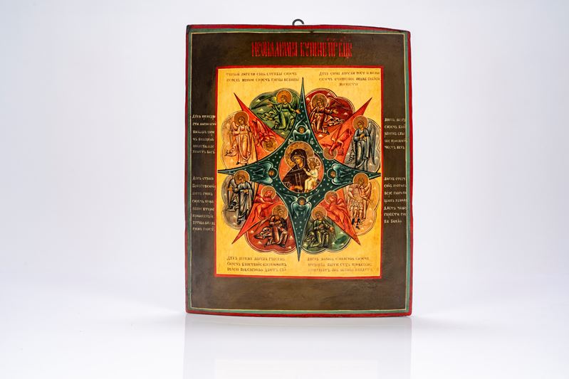 Icona su tavola raffigurante la Madonna del Roveto ardente. Russia, XIX secolo