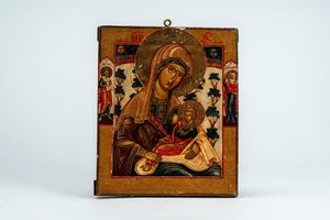 Due icone su tavola raffiguranti le Dodici Grandi Feste e la Madonna della Tenerezza. Russia, XX...