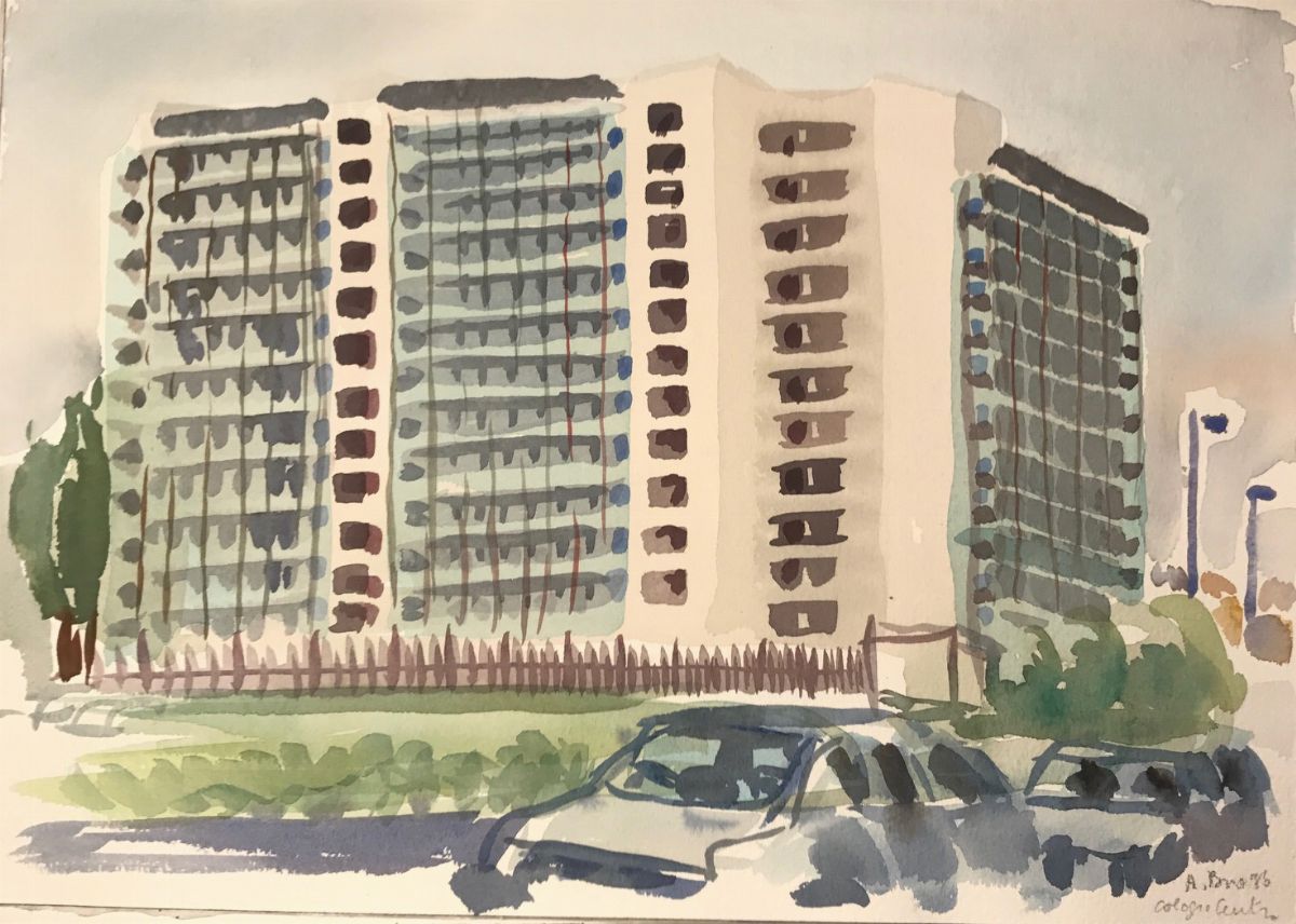 Acquarello su carta cotone a soggetto concordato fra artista e collezionista, musra 50x70 cm.