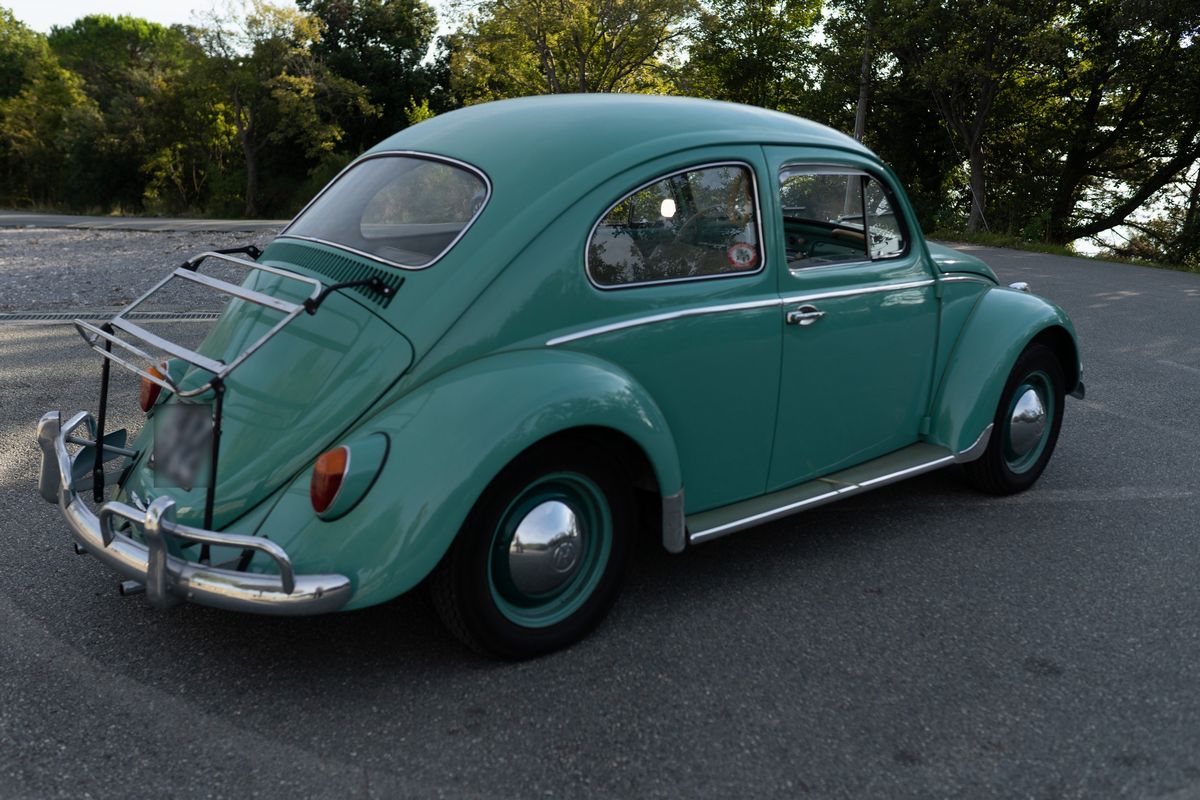 Vettura con tre proprietari. Il primo, a seguito di trasferimento, l’ha reimmatricolata Alessandria nel 1968; targa nera che mantiene, col libretto a pagine. Il secondo proprietario, a inizio anni 2000, ha provveduto a riverniciarla con il suo colore originale Volkswagen, Turkish Blue, e a sostituire il motore con un motore di rotazione (originale e revisionato in Volkswagen), privo di numero normalmente stampigliato. Interni e sedili sono originali e conservati. Il terzo proprietario ha rifatto l’impianto elettrico originale a 6 volts; per sicurezza è stato aggiunto uno stacca batteria; ha installato una radio Blaupunkt coerente con l'epoca; cappelliera; tappetini pedane originali in tinta carrozzeria; sostituito la moquette molto usurata; sostituito i paraurti anteriori e posteriori con pezzi di recupero con cromature molto ben conservate; sostituito i tamburi freno posteriori; sabbiato e riverniciato i cerchioni. L’auto ha gomme nuove ma con disegno d’epoca. La vettura ha conseguito numerosi premi e riconoscimenti (una decina) ai vari raduni di marca.