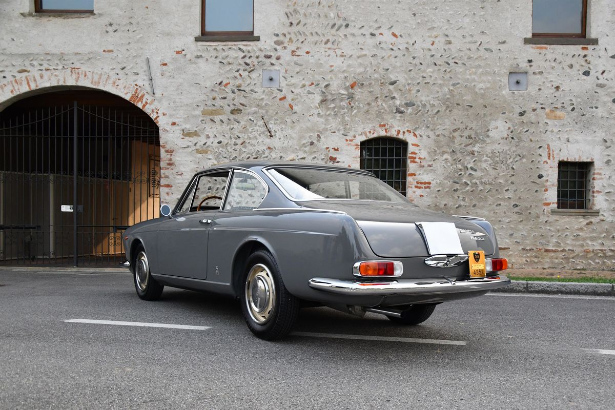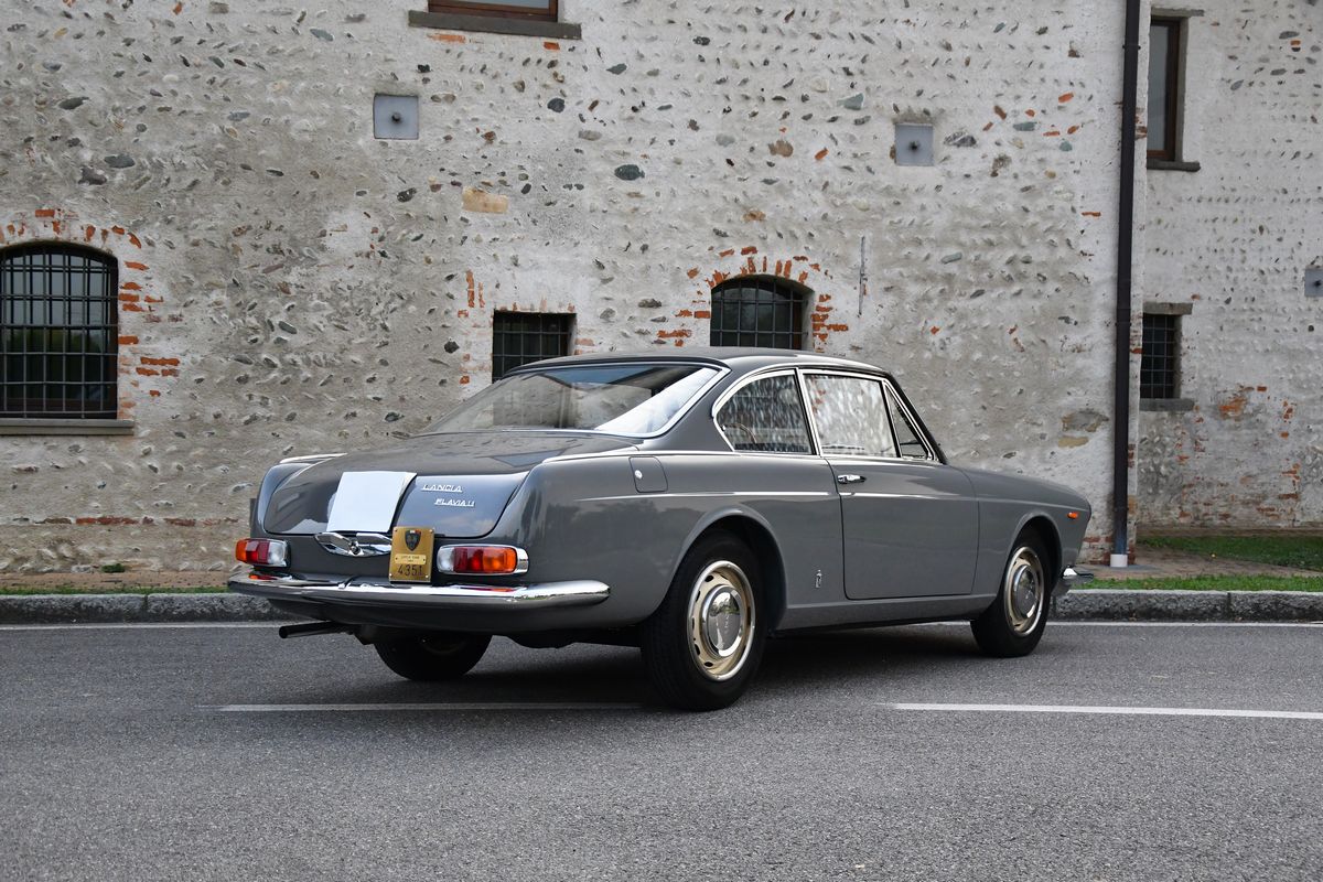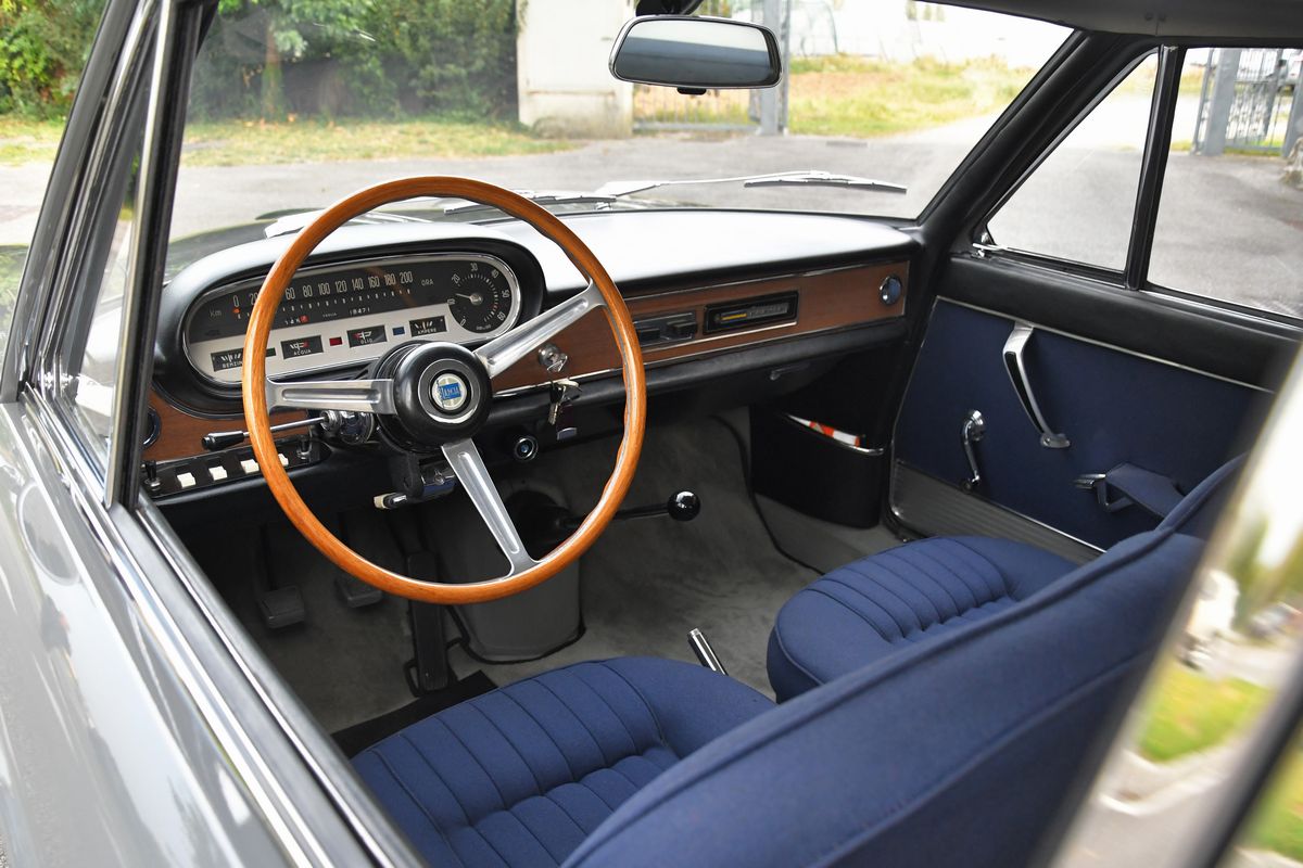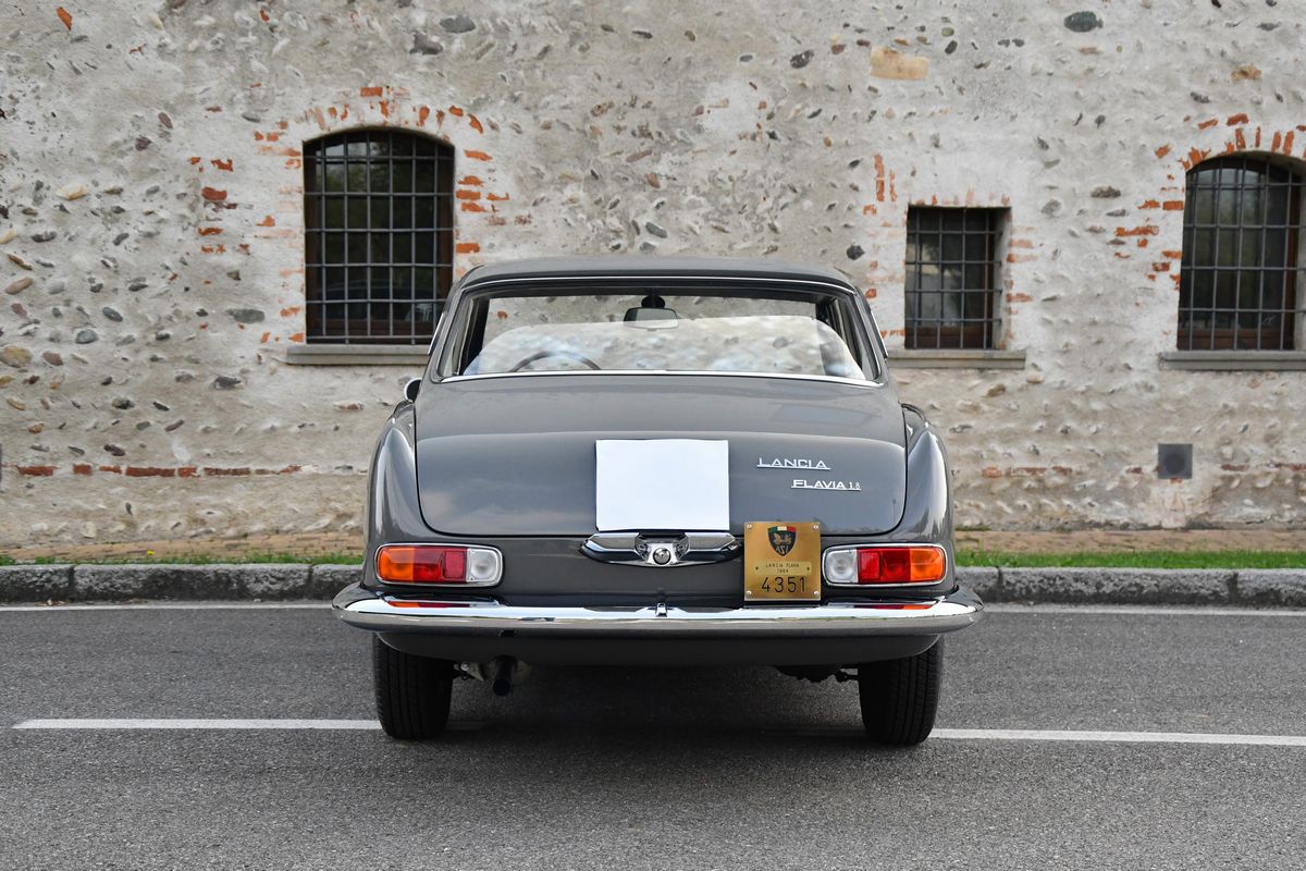 Nel 1960 la Lancia entra in profonda crisi economica e viene acquistata dall’industriale bergamasco Carlo Pesenti. Affida all’ing. Fessia, ex capo progetti Fiat la direzione tecnica. Nel 1962 viene presentata la Lancia Flavia, la prima vera auto italiana di grande produzione a trazione anteriore. Venne proposta in versione berlina con motore 1500, ma già dall’anno successivo arrivò la versione 1800, coupé, disegnata da Pinfarina, come il nostro esemplare. Fece seguito una versione spider di Vignale. Il nostro esemplare, telaio 6287, viene immatricolato a Pavia il 4 gennaio 1964, ma già nel 1965 viene re-immatricolato a Varese, con la targa che porta tuttora. Si presenta in condizioni impeccabili a seguito di un importante restauro di carrozzeria. Il motore è conservato mentre gli interni sono stati restaurati, ed è stato montato un volante Nardi. Tutta la strumentazione è funzionante. L’esemplare è caratterizzato dalla Targa Oro ASI.
