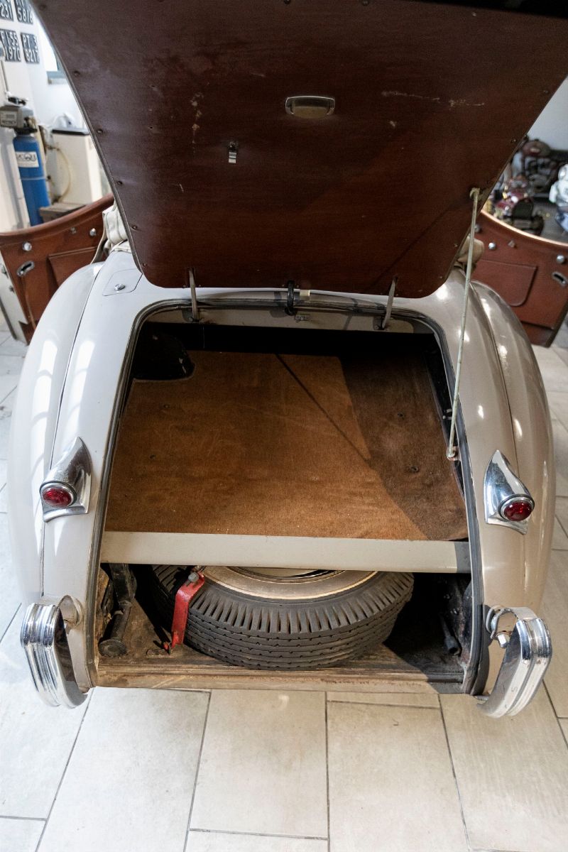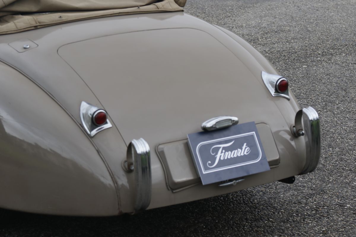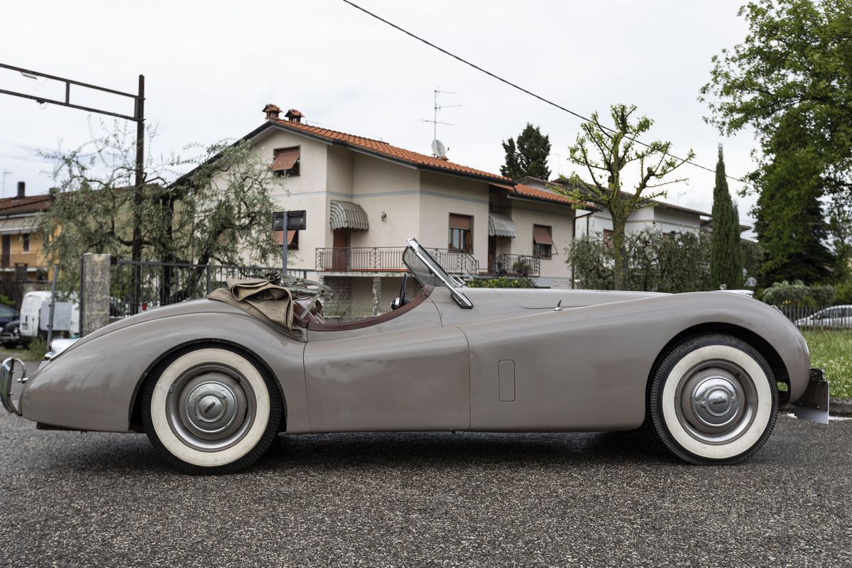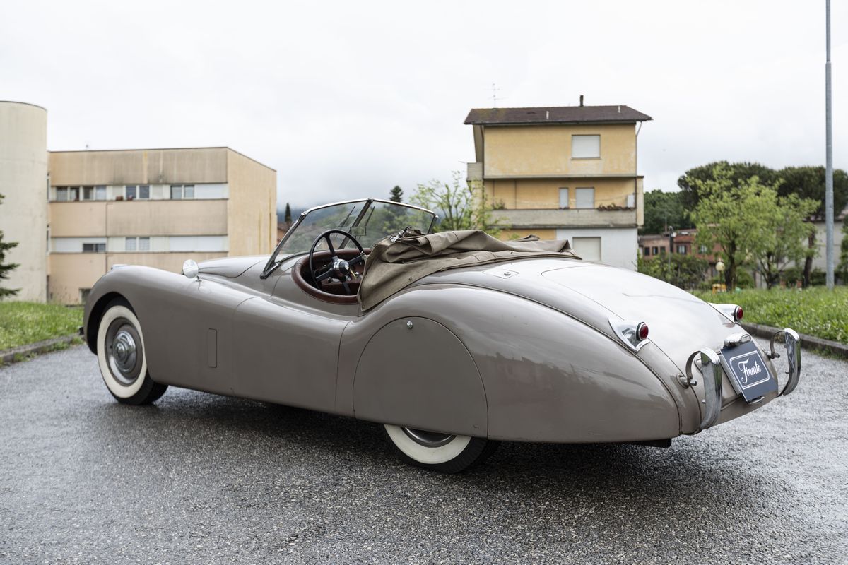 Se esiste un marchio parimenti collegato ai concetti di lusso e sportività, questo è Jaguar. Il marchio inglese ebbe nell'immediato dopoguerra un'arma imbattibile: la prima vettura di serie capace di 200 kmh; circa 120 miglia orarie, da cui il nome XK 120. Il modello è molto amato dai collezionisti e si possono reperire esemplari da restaurare o restaurati; ma è difficile incontrare un esemplare completamente ed eccezionalmente conservato come questo, nel colore, nelle sellerie, in ogni dettaglio ma perfettamente mantenuto e funzionante: una vera e unica, imperdibile testimonianza.