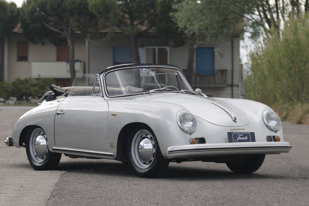 La 356 fu creata da Ferdinand "Ferry" Porsche (figlio del Ferdinand fondatore della compagnia tedesca), che fondò l'azienda austriaca. Come la Volkswagen Beetle progettata da Ferdinand Porsche Sr., la 356 era una quattro cilindri raffreddata ad aria, motore posteriore, a trazione posteriore con carrozzeria e struttura integrata. Il telaio era un progetto completamente nuovo così come lo era la carrozzeria della 356, opera del dipendente Porsche Erwin Komenda, mentre alcuni componenti meccanici, tra cui il blocco motore e alcuni componenti delle sospensioni, erano basati e inizialmente acquistati da Volkswagen. La 356 era un'auto sportiva di lusso e la prima automobile di serie Porsche. Le innovazioni ingegneristiche continuarono durante gli anni di produzione, contribuendo ai successi sportivi e alla popolarità. La produzione iniziò nel 1948 a Gmünd, in Austria e fu trasferita, nel 1950 a Zuffenhausen in Germania, dove vennero costruite le prime 356 dette anche, retrospettivamente, "Pre-A". Nel 1956 la 356 fu sostituita dalla 356 A, lanciata sul mercato con cinque motorizzazioni: 1300 con 44 CV; 1300 Super con 60 CV; 1600 con 60 CV; 1600 Super con 75 CV; 1500 GS Carrera con 100 CV. Le modifiche alla vettura erano parte del cosiddetto "Programma tecnico 1" (T1). Esteticamente la 356 A si differenziava dalla prima 356 soprattutto per un parabrezza panoramico curvato, in un unico pezzo e anche per una maniglia del cofano anteriore modificata con stemma Porsche incassato. Dal 1957, le luci posteriori, integrate, presentavano una forma a goccia. Nel 1958 (T2) i modelli 1300 uscirono di produzione. I terminali di scarico dei modelli 1600 terminavano tra i rostri del paraurti per una maggiore altezza libera dal suolo. L'alloggiamento cromato con illuminazione della targa e luce retromarcia veniva montato sotto la targa stessa. Tutte le versioni erano disponibili anche in una carrozzeria aperta (Cabriolet e Speedster sostituita poi dalla Convertible D). Durante il 1959 la 356 A venne sostituita dalla 356 B. La produzione generale della 356 continuò fino all'aprile 1965, ben dopo che il nuovo modello 911 aveva fatto il suo debutto nell'autunno del 1963. Ne furono prodotte circa 76.313 unità. Di queste, le cabriolet prodotte nel 1959 risultano essere 944.