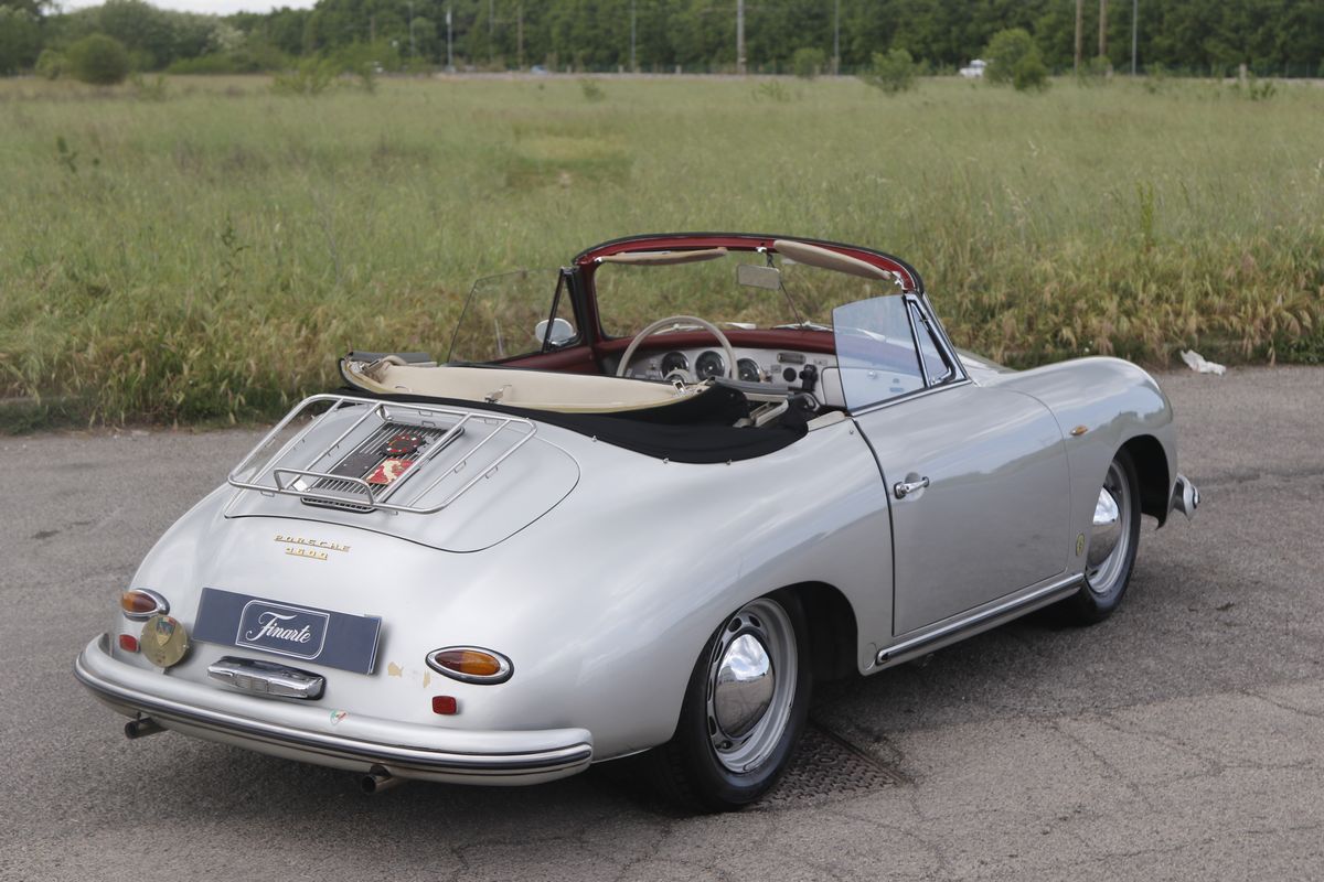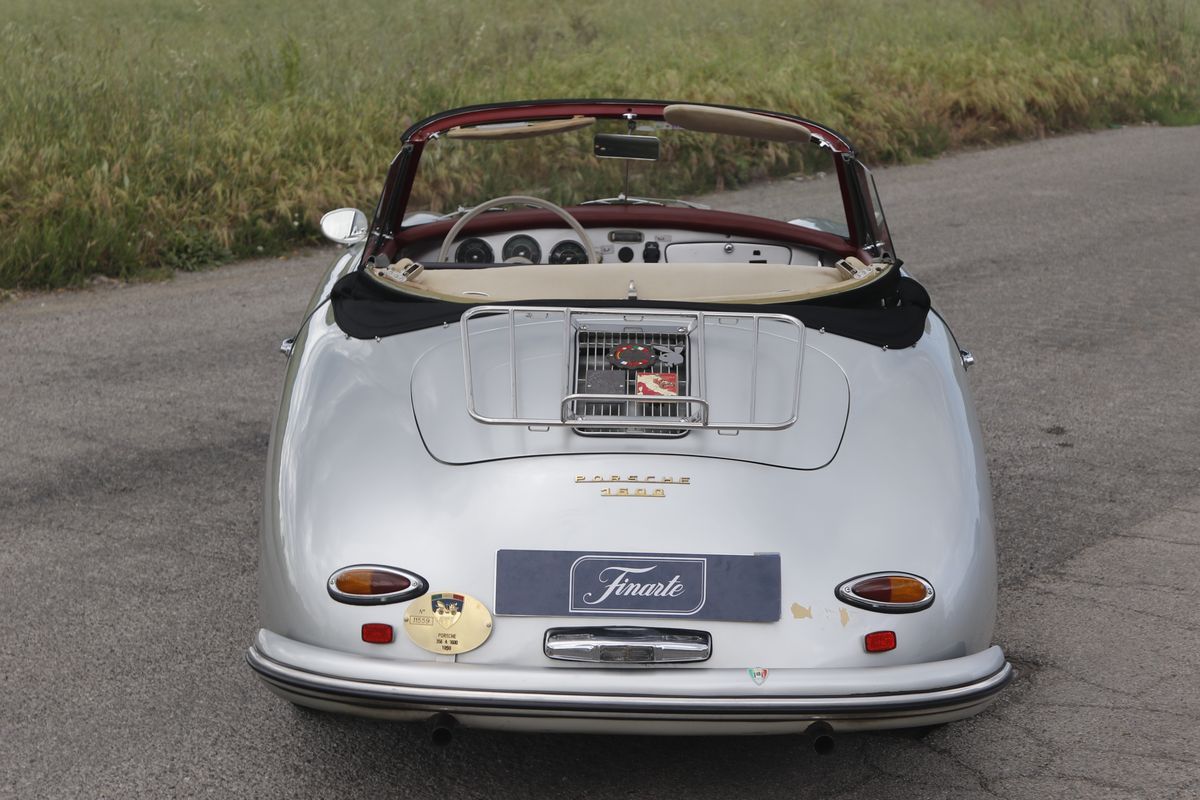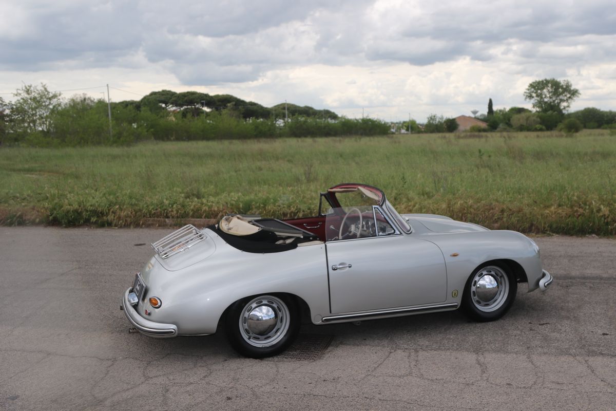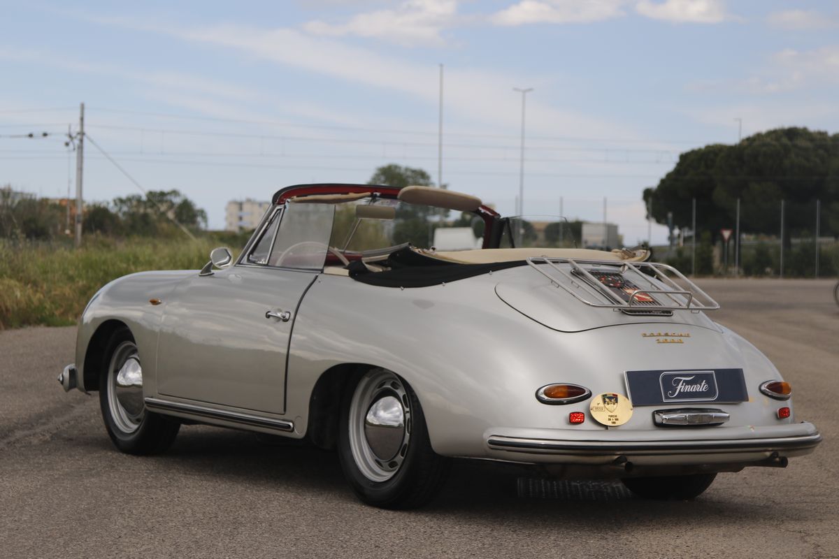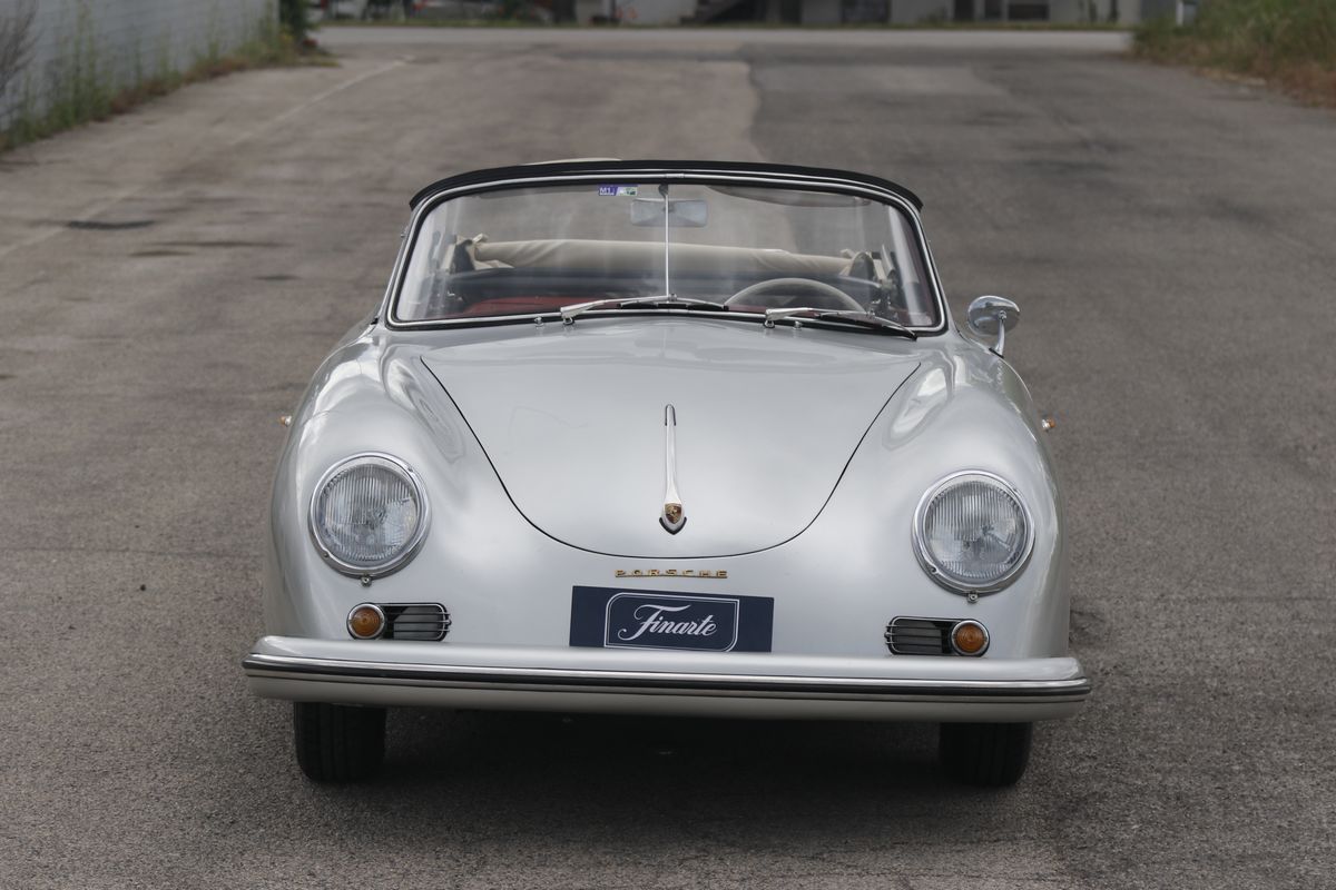 La Porsche 356 A Cabriolet, telaio no. 151713 ha carrozzeria Reutter e motore del tipo 616/1. Costruita nel 1959, presenta tutte le caratteristiche delle 356 A del tipo T2, costruite dal 1958 a metà 1959.Il motore, nella cilindrata unificata, da quello stesso anno, di 1600 cc, sviluppa in questa versione 60 hp. La vettura si presenta in un’incredibile condizione conservata in tutte le sue parti, con targhe italiane recenti e certificati ASI, Fiva e Porsche; presenti accessori e dettagli che ne testimoniano un uso “quotidiano”. Aggiunge fascino la bellissima combinazione dei colori originali di carrozzeria/interni: Silbermetallic (argento metallizzato 5706)/Rot (pelle rossa). Da non trascurare l’opportunità di trovare una 356 A Cabriolet in queste, eccellenti, condizioni, in un momento in cui l’acquisto di una Porsche è un sicuro investimento. Infine, come avrebbe detto Ferry Porsche: bella e divertente da guidare. In gara e tutti i giorni.