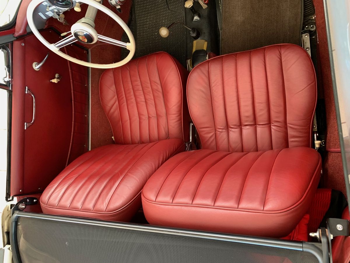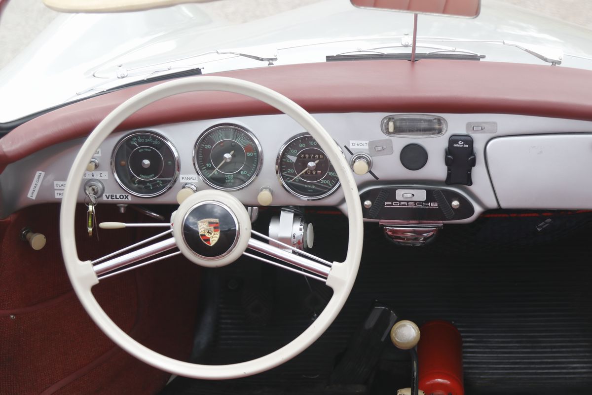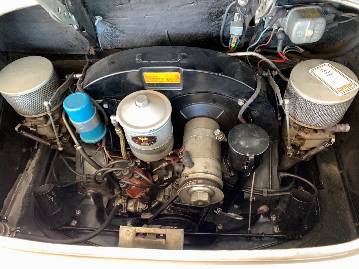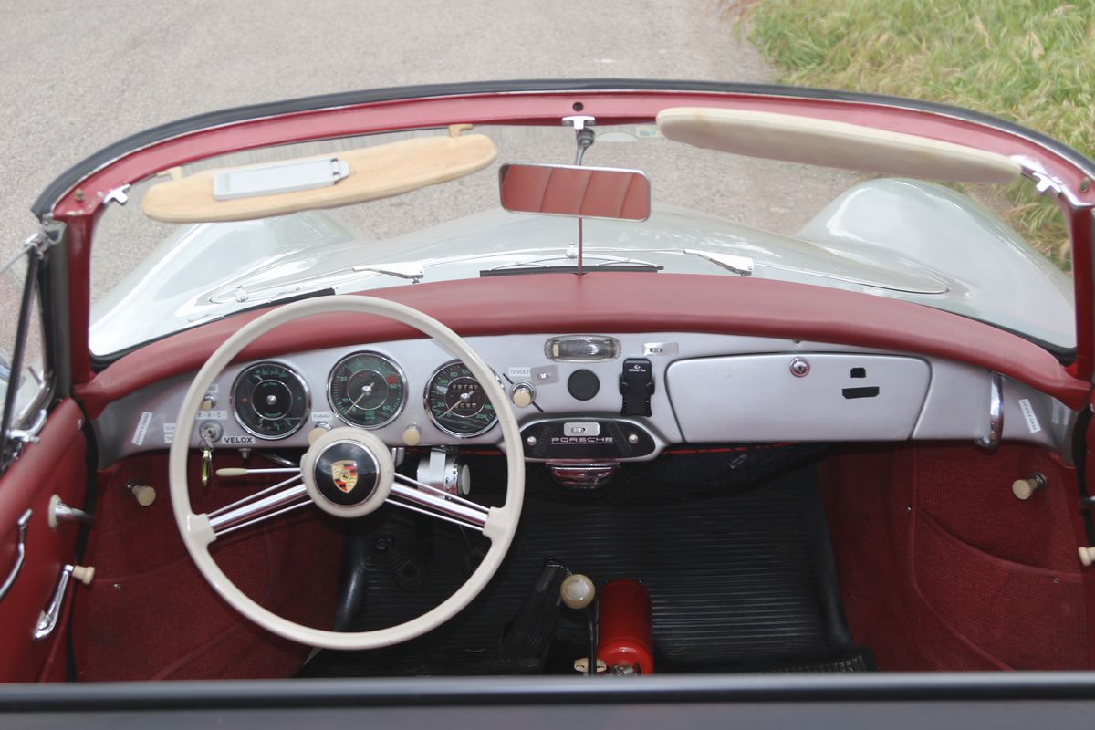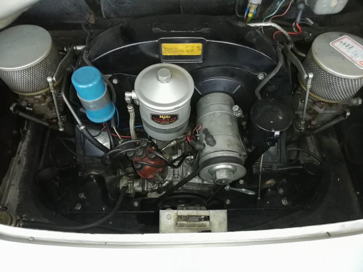 La Porsche 356 A Cabriolet, telaio no. 151713 ha carrozzeria Reutter e motore del tipo 616/1. Costruita nel 1959, presenta tutte le caratteristiche delle 356 A del tipo T2, costruite dal 1958 a metà 1959.Il motore, nella cilindrata unificata, da quello stesso anno, di 1600 cc, sviluppa in questa versione 60 hp. La vettura si presenta in un’incredibile condizione conservata in tutte le sue parti, con targhe italiane recenti e certificati ASI, Fiva e Porsche; presenti accessori e dettagli che ne testimoniano un uso “quotidiano”. Aggiunge fascino la bellissima combinazione dei colori originali di carrozzeria/interni: Silbermetallic (argento metallizzato 5706)/Rot (pelle rossa). Da non trascurare l’opportunità di trovare una 356 A Cabriolet in queste, eccellenti, condizioni, in un momento in cui l’acquisto di una Porsche è un sicuro investimento. Infine, come avrebbe detto Ferry Porsche: bella e divertente da guidare. In gara e tutti i giorni.
