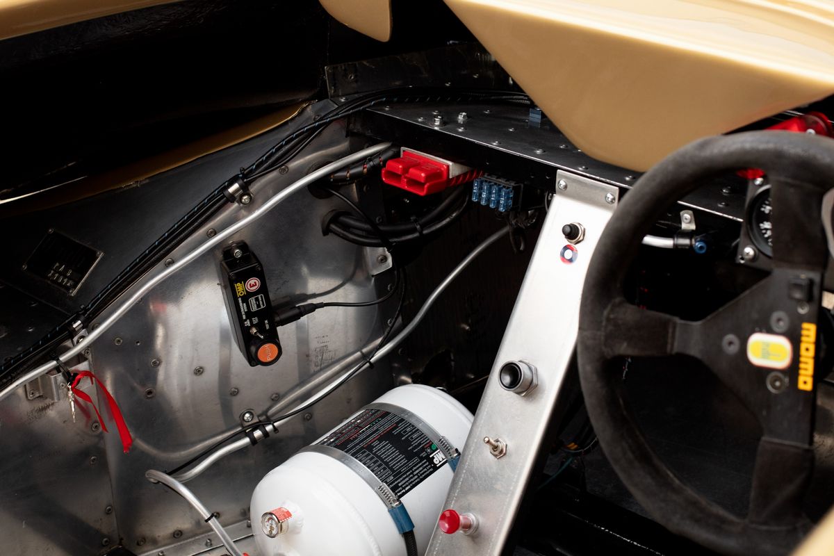 Realizzato nel 1980, il telaio no. 101 è uno dei due realizzati per ospitare il motore BMW M12 in versione turbo; in seguitò il motore Turbo fu sostituito per ragioni di affidabilità con una unità M12 aspirata, sempre da 2.000 cc, dotata di iniezione meccanica ed accoppiata ad un cambio Hewland. Affidata ad un team francese, con sponsor Jagermeister, ha corso poi in Spagna per tornare infine in Italia 10 anni fa. Acquistata dall’attuale proprietario tre anni fa, è stata completamente restaurata e ha all’attivo solo due gare nell’ultimo anno. Ampio il corredo di cerchi e gomme e di accessori e parti forniti.