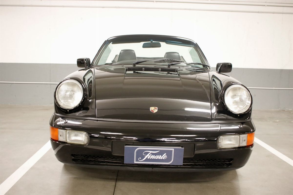 Annunciata ufficialmente nel novembre del 1988, la nuova versione di Porsche 911 prende il nome dal progetto, 964, e segna una vera rivoluzione nei modelli della casa tedesca, infatti la nuova 911 viene assemblata con oltre l'80% di nuovi componenti. Il modello vedrà la luce nel 1989 con un telaio completamente ridisegnato: la 964 segna la fine delle barre di torsione, presenti sui modelli Porsche dal 1963, in favore delle molle elicoidali; l'impianto frenante, rivisto anch’esso con dischi freni autoventilanti da 298 mm (anteriori) e 299 mm (posteriori) deriva dalla 928 S4 ed è dotato del sistema antibloccaggio ABS Bosch. Anche il propulsore è totalmente nuovo, sempre boxer a 6 cilindri, siglato M64/01 con una capacità di 3.6 litri, dotato di un nuovo basamento in lega leggera e doppia accensione, con una potenza massima portata a 250 hp a 6.100 giri/min. ed una coppia di 310 Nm a 4.800 giri/min. Nuovo anche il cambio a 5 rapporti tipo G64/00, con differenziale posteriore in blocco e, nella versione Carrera 4, con rinvio per quello anteriore, entrambi comandati elettronicamente. Altra peculiarità tecnica della 964 a trazione integrale è la possibilità di bloccare i differenziali manualmente, tramite un comando all’interno dell’abitacolo, in modo da aumentare la trazione sul terreno, permettendo alla vettura di districarsi anche nelle situazioni di scarsa aderenza (ma il sistema automatico riprende il controllo superati i 40 Km/h). La 964 Carrera 4 è riconosciuta da molti appassionati come una delle migliori Porsche sulla neve, in grado di far fronte anche a condizioni normalmente proibitive per una sportiva di questo tipo. Esternamente, la 964 presenta un nuovo disegno dei paraurti anteriori e posteriori, dei veri e propri scudi costruiti in materiale plastico. Sul cofano motore, è installato un piccolo spoiler a comando elettrico, mentre tra le luci posteriori rimane la, ormai tradizionale, fascia di raccordo riflettente rossa con la scritta Porsche. La versione Cabriolet della nuova Porsche 911 debutta nel 1990, nel cosiddetto programma L, sempre nell’ambito del progetto 964. La versione scoperta, disponibile sia in versione Carrera 2 che Carrera 4 debutta sul mercato assieme alla più “conservatrice” versione Targa. La versione cabriolet presenta una capote in tessuto ripiegabile con comando automatizzato e lunotto in plastica. Nello stesso anno, Porsche lancia il nuovo cambio automatico a 4 rapporti Tiptronic, disponibile solo per le Carrera 2. La Porsche 964 rimase in produzione fino al1994 con leggere modifiche alla linea e aggiornamenti nella dotazione, come gli airbag, nel 1991. La 964 Carrera 4 è la massima espressione della Porsche 911 come auto sfruttabile tutti i giorni dell’anno in ogni condizione di clima e di strada: l’aria condizionata, il tetto apribile e il deflettore per l’interno permettono di godersi a pieno la Cabriolet nelle giornate d'estate. In inverno, se dotata di opportuni pneumatici da neve, la 964 Carrera 4 è utilizzabile anche nelle giornate con le strade ricoperte di neve o ghiacciate. Se la Porsche 911 è la sportiva capace di lunghe percorrenze in souplesse, la versione Carrera 4 elimina anche l’attenzione necessaria al volante sul bagnato, necessaria nella guida della versione a trazione posteriore.