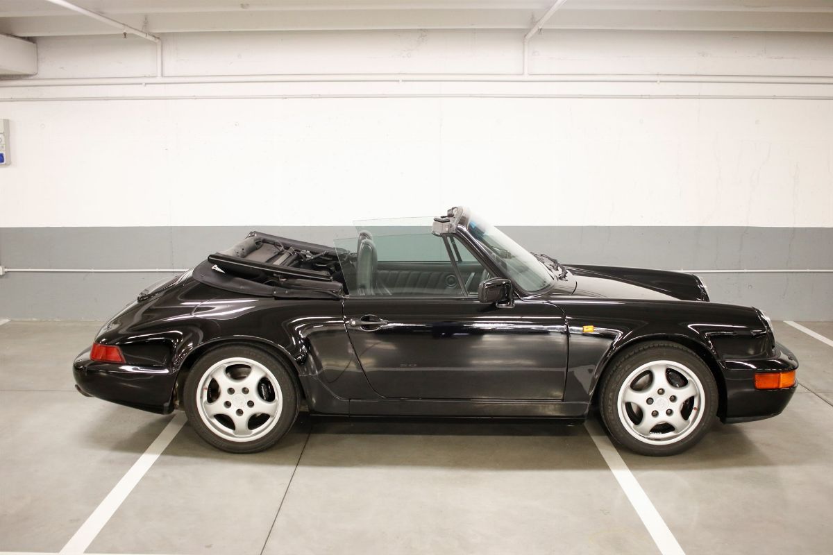 La Porsche 911 Carrera 4 Cabriolet, telaio no.WPOZZZ96ZMS451419, fa parte degli esemplari realizzati nel 1991 ed ha percorso 97.507 Km. Proviene dalle vetture scelte per la Collezione Saottini. L'auto è conservata e la carrozzeria non presenta alcun segno di scolorimento o usura, gli interni sono nella loro pelle originale in una squisita condizione conservata. Il rivestimento in tessuto della capote è in perfetto stato, senza strappi o scolorimenti; anche il lunotto è in ottime condizioni. Grazie agli accessori, è possibile utilizzare questa 964 tutto l’anno a capote aperta; in estate grazie al climatizzatore e in autunno/primavera e, per chi vuole osare, in inverno grazie ai sedili riscaldati. Stabilità e la trazione sono garantite dalla trazione integrale. Gli ulteriori accessori che equipaggiano l’auto sono i cerchi da 17” cup, molto apprezzati dagli appassionati, fascia scura sul parabrezza, computer di bordo, radio symphony e gli airbag per guidatore e passeggero. Dispone di una capote nera supplementare.