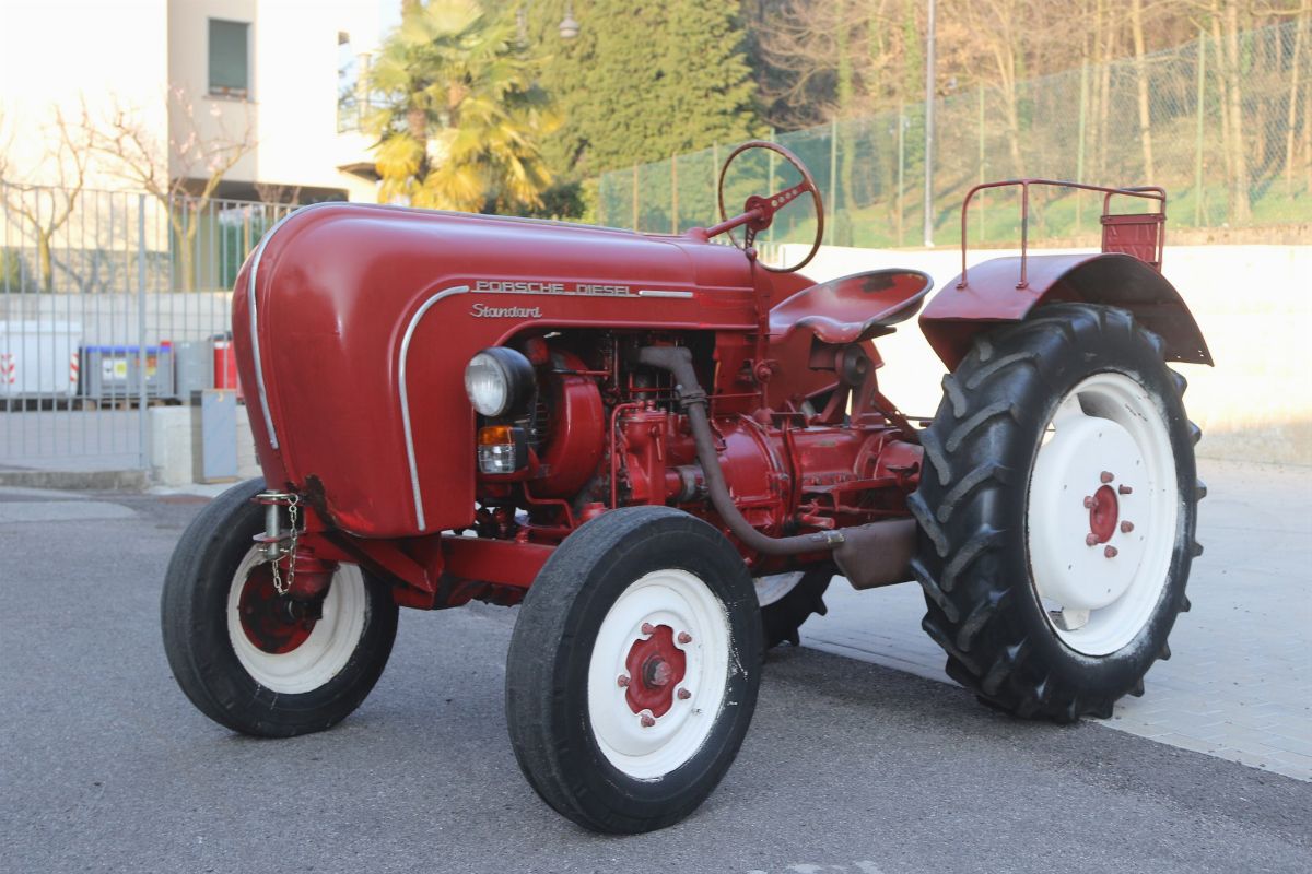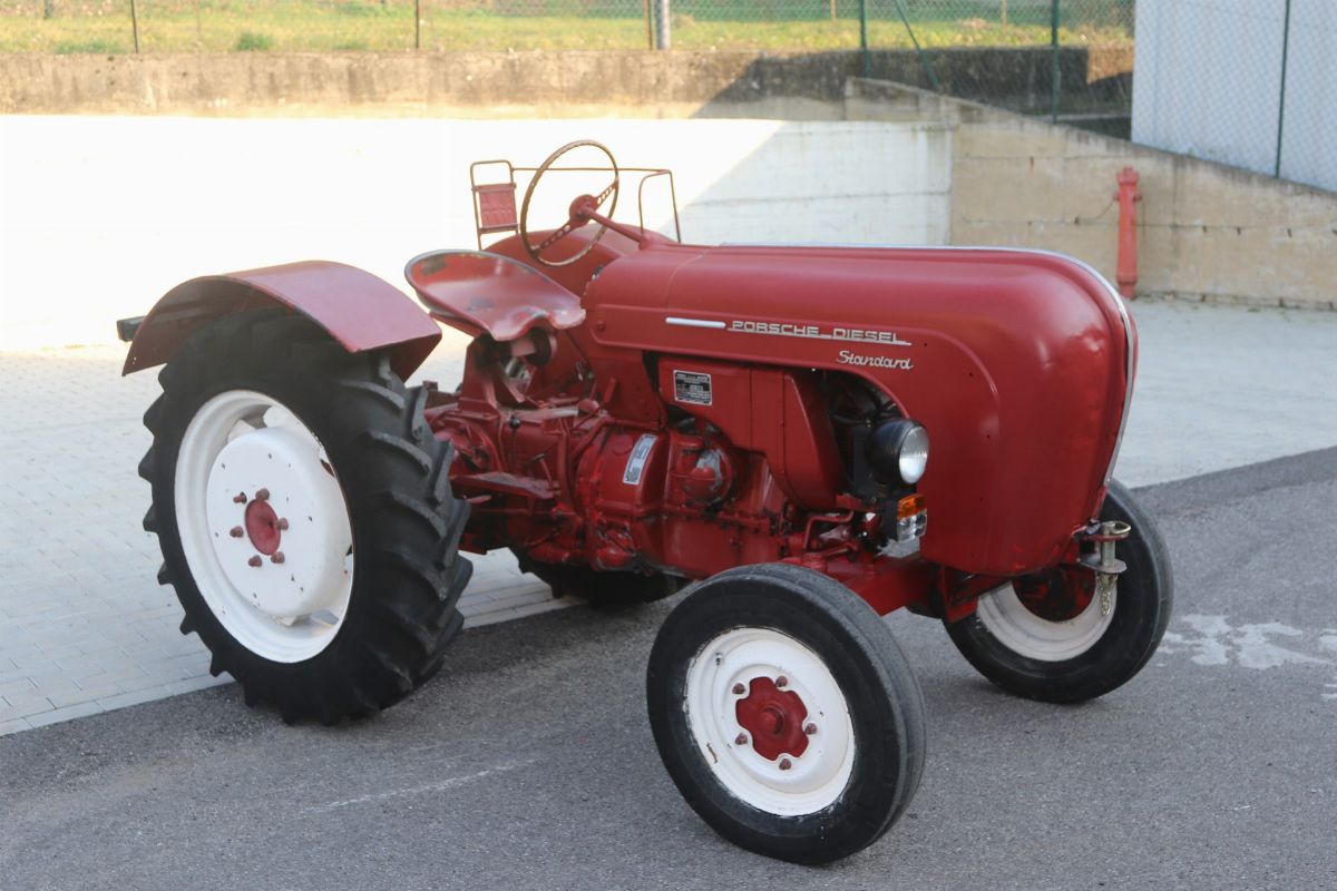 Negli anni '30, mentre stava creando quella che sarebbe diventata l’immortale Volkswagen, il Dr. Ferdinand Porsche iniziò i lavori di progettazione su un trattore agricolo con motore raffreddato ad aria a basso costo, capace di funzionare con il carburante a basso numero di ottani dell’epoca. Fu soprannominato "Volkschlepper".Secondo l'American Porsche-Diesel Tractor Registry, furono costruiti tre diversi prototipi, con l'endorsement del governo. Attingendo all’esperienza fatta con il motore boxer raffreddato ad aria del Maggiolino, il Dr. Porsche realizzò un trattore diesel semplice, robusto, raffreddato ad aria, con una trasmissione ad accoppiamento idraulico e che era quasi modulare nel concetto. La guerra interruppe i piani per mettere in produzione il nuovo trattore.A guerra terminata, in Germania, solo le aziende che avevano costruito trattori prima e durante la guerra poterono riprendere la produzione e Porsche non era tra queste. La società si accordò per concedere in licenza i suoi progetti alla tedesca Allgaier GmbH e ad una società austriaca, la Hofherr Schrantz. Nel 1956,l'industriale Mannesmann AG acquistò la licenza di produzione di motori diesel Porsche ei progetti del telaio Allgaier, che incorporava più prese di forza e attacchi. Una nuova divisione chiamata Porsche-Diesel Motorenbau GmbH a Friedrichshafenam Bodensee entrò in produzione in un nuovo e moderno stabilimento, producendo oltre 125.000 trattori di varie cilindrate fino alla fine delle vendite nel 1963.Nel modello a due cilindri "Standard", la potenza viene trasmessa alla trasmissione tramite un "accoppiamento turbo-idraulico", che annulla la necessità di cambiare manualmente ad ogni marcia. Ci sono prese di forza nella parte anteriore, posteriore e centrale del mezzo, per la connessione a una vasta gamma di attrezzi agricoli disponibili.Il Porsche-Diesel Standard 218, noto anche come N 218,succedette al suo predecessore,il Porsche-Diesel 208 nel 1957; èla terzagenerazione della serie di trattori “Standard” ed è stato prodotto in quattro diverse varianti.Il suo motore Porsche F 218 è un’unità diesel a due tempi e due cilindri, raffreddato ad aria, con iniezione nella camera di turbolenza e valvole in testa. Ha un basamento in alluminio, una ventola di raffreddamento radiale, un sistema di lubrificazione a carter umido e un filtro dell'aria a bagno d'olio. L'albero motore ha tre supporti. Ogni pistone ha cinque fasce elastiche. La pompa di iniezione in linea è di produzione Bosch.In totale, furono prodotti più di 12.000 trattori “Standard” 218 dal 1957 al 1963.