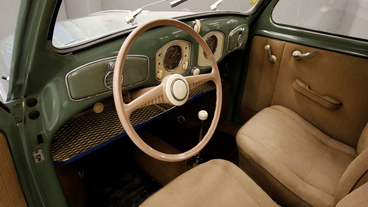 Il Maggiolino con telaio no. 1-0370290, allestimento De Luxe, è stato uno dei primi (ma si ipotizza possa essere addirittura il primo) venduto da Giacomo Saottini stesso, nel luglio 1952. Dal 1951 la Saottini Auto era concessionaria Volkswagen e Porsche; la prima nomina in Italia. Una particolarità, riportata sul certificato di iscrizione al PRA, è che l'importatore per l'Italia del marchio Volkswagen era la “Mario Mordacci”di Modena, prima società con la quale Gerard Gumpert operò in Italia e da cui, in seguito, nel 1954 ha avuto origine Autogerma, oggi e voluta nel Volkswagen Group Italia. Il 25 marzo 1964 la Saottini Auto è tornata in possesso della vettura con procura speciale dell'allora proprietario Angelo Bracchi, successivamente convertita in atto di vendita e, da quella data, è sempre stata nella disponibilità dell’azienda, custodita con riguardo. La vettura è ancora immatricolata con le targhe Brescia d’origine, ha libretto “a pagine” di prima immatricolazione e certificato d’origine della casa. La vettura si presenta in perfetto stato di conservazione, con carrozzeria verniciata nel colore d’origine verde pastello (L-11), e gli interni in stoffa, con tracce del tempo ma in ottimo stato. In ordine la meccanica, con motore 1131 cc, sempre manutenuta secondo i protocolli della casa.
