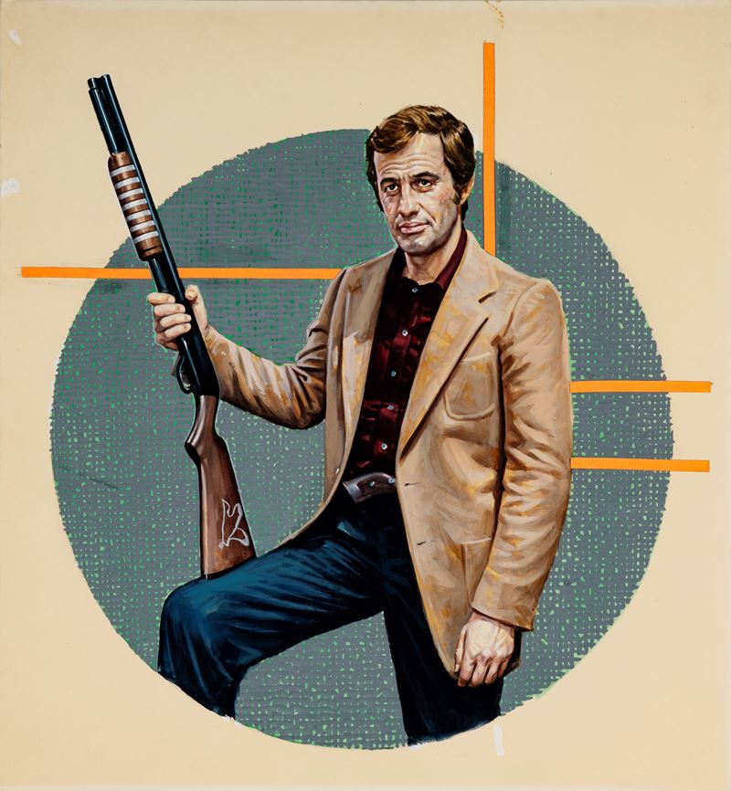 Bozzetto originale realizzato la locandina del film "Lo sparviero", diretto da Philippe Labro con Jean-Paul Belmondo nel 1976.