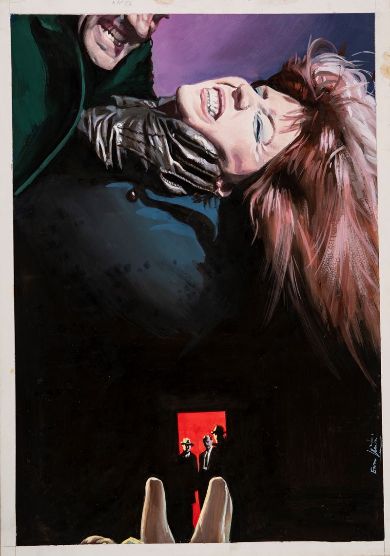 Bozzetto originale realizzato da Nistri durante gli anni '90 come recreation della locandina ufficiale del film "Lo strangolatore di Boston" diretto da Richard Fleischer con Tony Curtis e Henry Fonda nel 1968. Firmato.