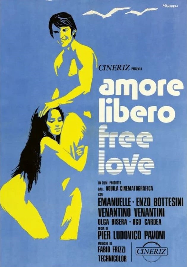 Bozzetto originale realizzato da Manfredo per la locandina ufficiale del film "Amore libero - Free Love", diretto da Pier Ludovico Pavoni con Laura Gemser nel 1974. Lievi pieghe orizzontali, fori di affissione e lievi pieghe agli angoli. Firmato.