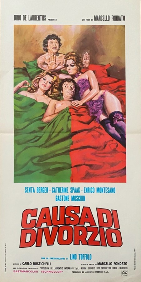 Bozzetto originale realizzato da Iaia per la locandina ufficiale del film "Causa di divorzio" diretto da Marcello Fondato con Catherine Spaak e Enrico Montesano nel 1972. Lievi pieghe agli angoli.