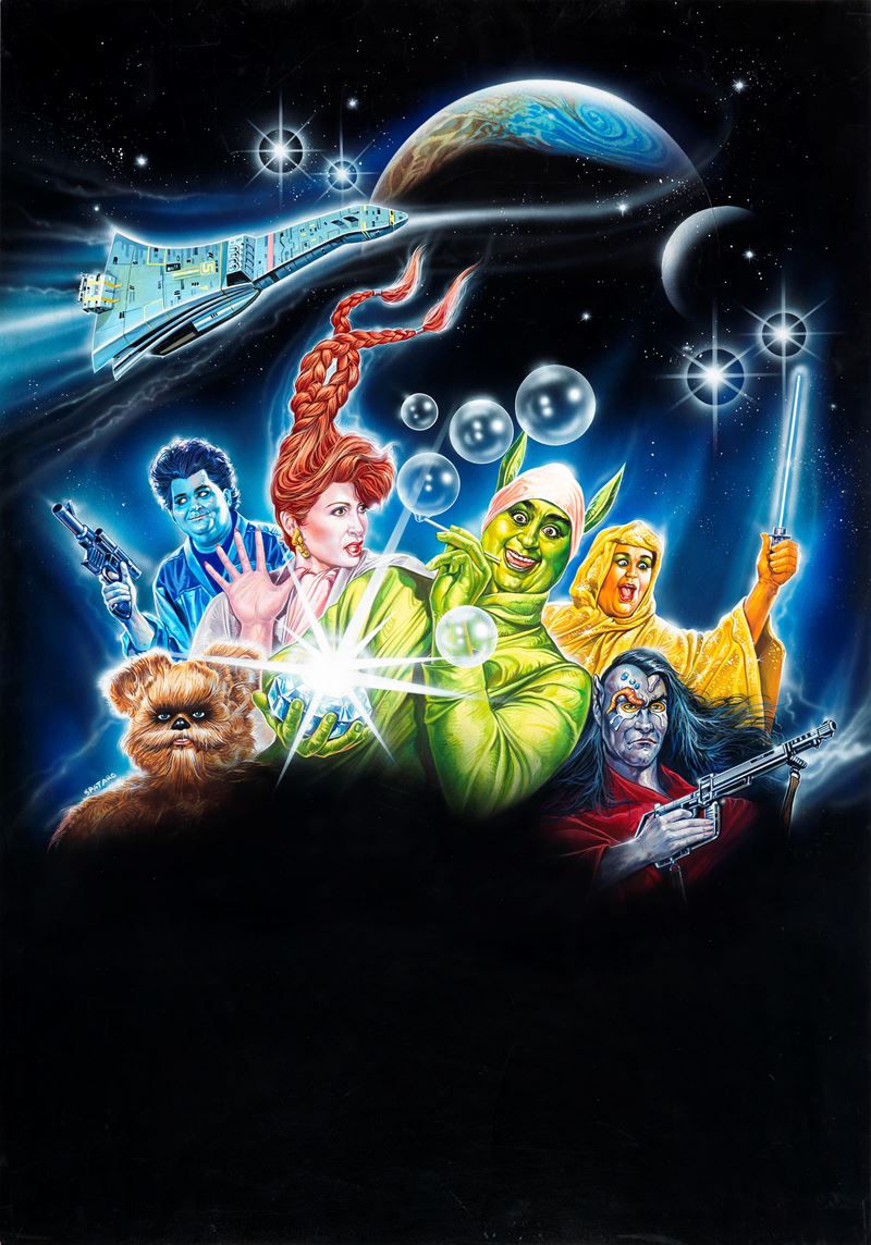 Bozzetto originale realizzato da Spataro per la locandina ufficiale del film "Balle spaziali 2 - La vendetta", diretto da David Odell con Rob Schneider nel 1989. Firmato.