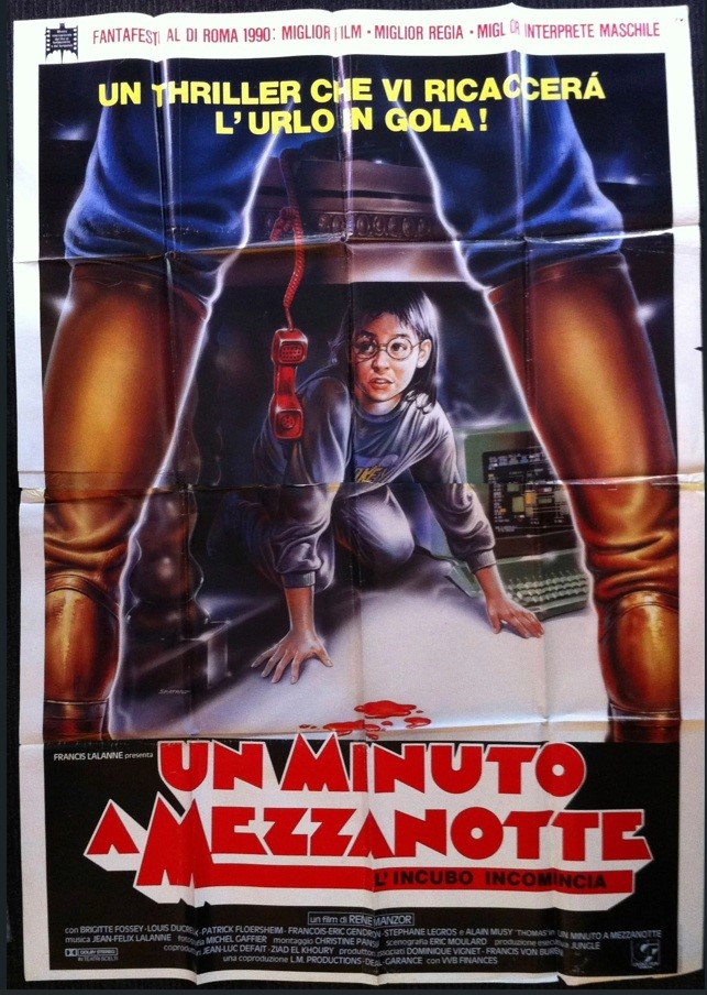 Bozzetto originale realizzato da Spataro per la locandina ufficiale del film "Un minuto a mezzanotte" diretto da René Manzor con Brigitte Fossey nel 1990. Firmato.