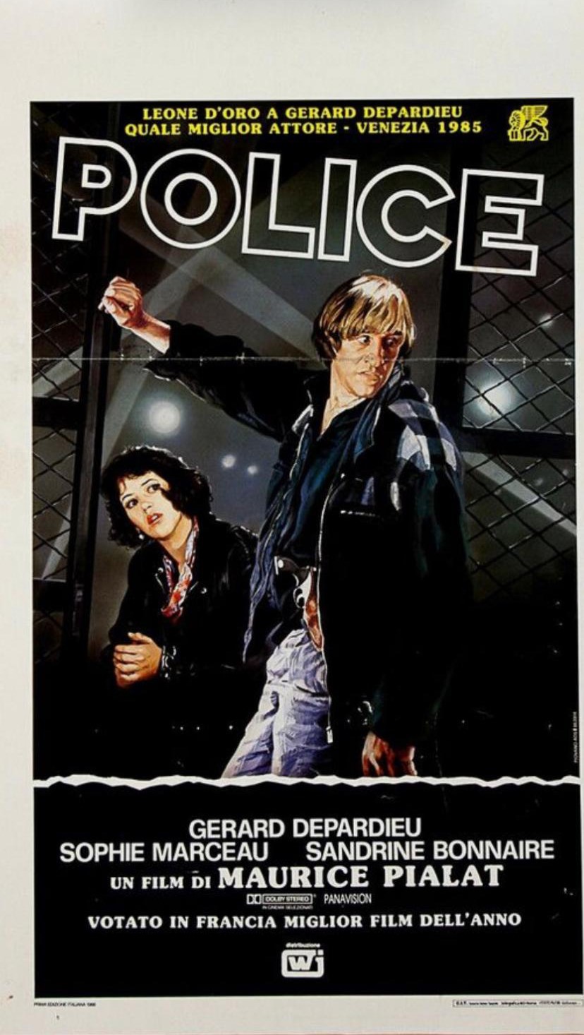 Bozzetto originale realizzato dallo Studio Piovano per la locandina ufficiale del film "Police" diretto da Maurice Pialat con Gérard Depardieu e Sophie Marceau nel 1985. Lievi abrasioni al margine sinistro. Firmato.