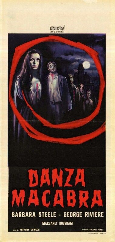 Bozzetto originale realizzato per la locandina ufficiale del film "Danza macabra", diretto da Antonio Margheriti (sotto lo pseudonimo di Anthony M. Dawson) con Barbara Steele e Margarete Robsahm nel 1964. Fori di affissione ai margini e lievi pieghe agli angoli.