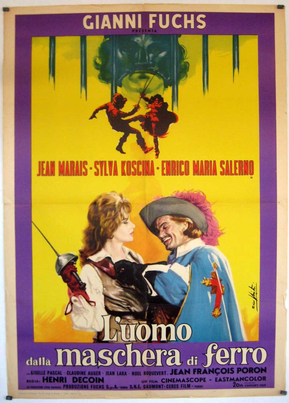 Bozzetto originale realizzato da Nistri per la locandina ufficiale del film "L'uomo dalla maschera di ferro", diretto da Henri Decoin con Jean Marais e Enrico Maria Salerno nel 1962. Piccolo strappo al margine sinistro. Firmato.