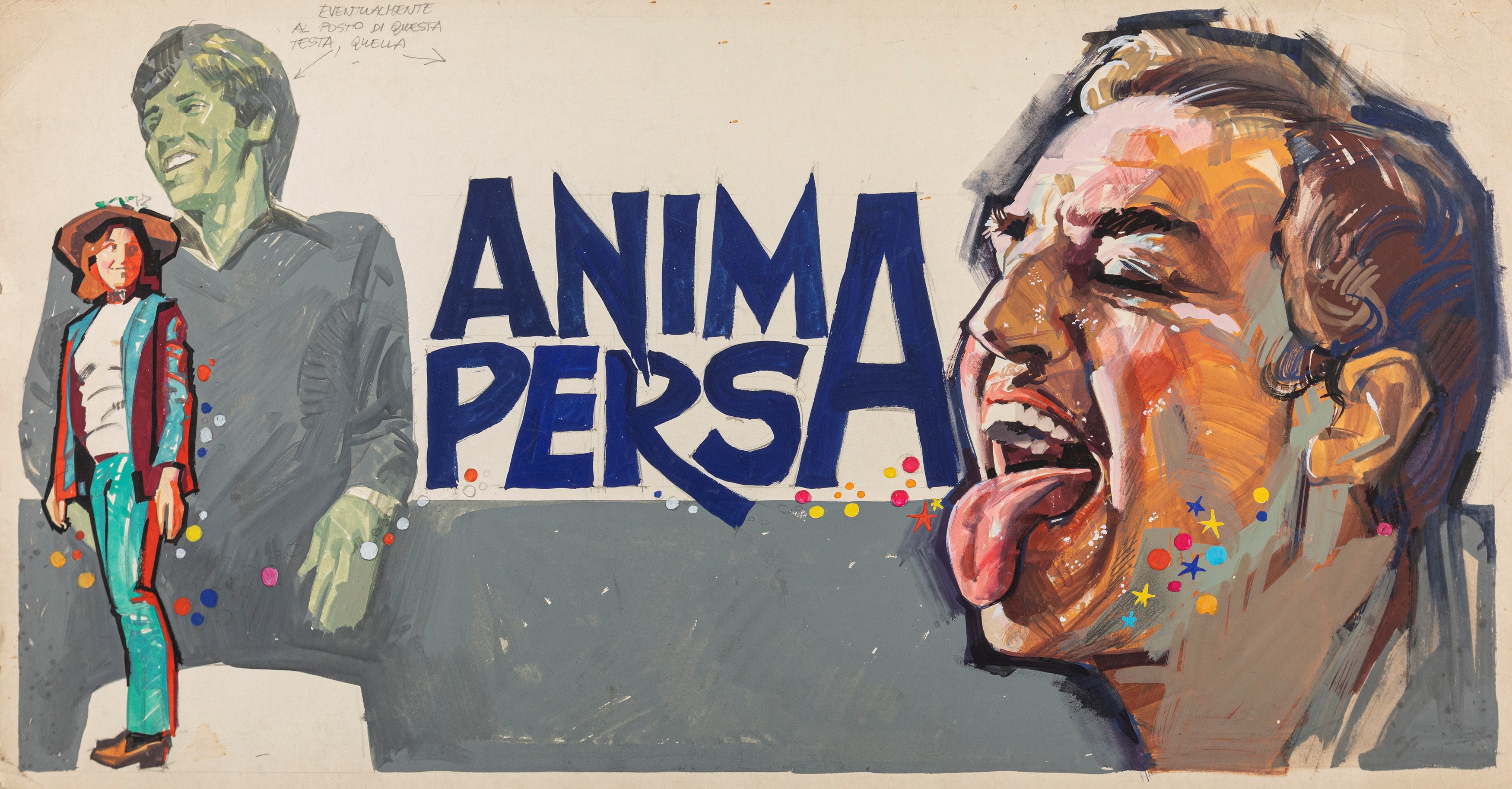 Lotto di 3 bozzetti originali realizzati da Iaia per la locandina del film "Anima persa", diretto da Dino Risi con Vittorio Gassman e Catherine Deneuve nel 1977. Lievi pieghe agli angoli.