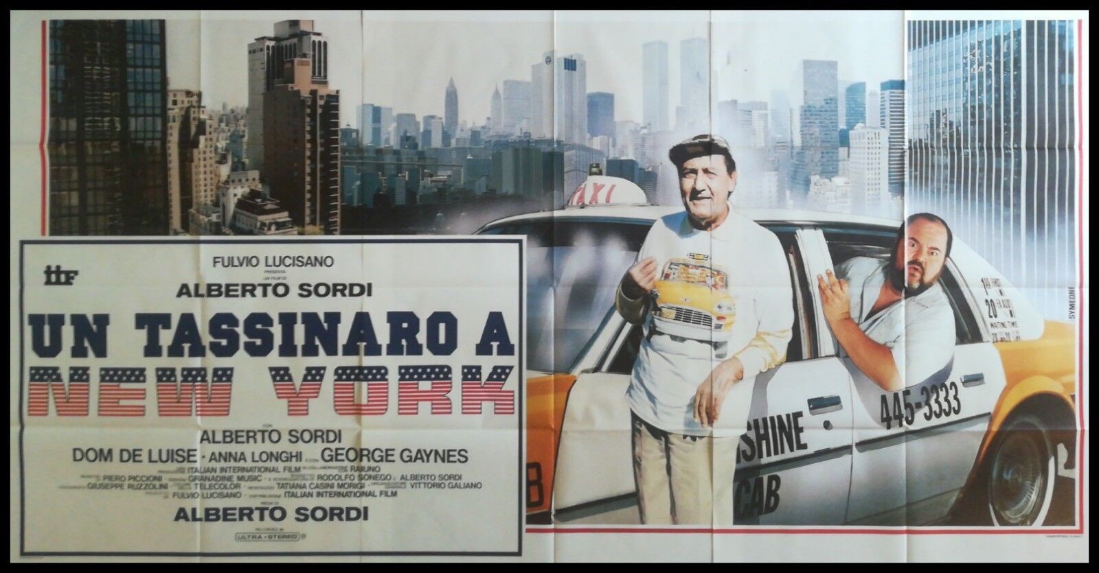 Bozzetto originale realizzato da Symeoni per la locandina ufficiale del film "Un tassinaro a New York", diretto da Alberto Sordi con Anna Longhi e Alberto Sordi nel 1987. Firmato.