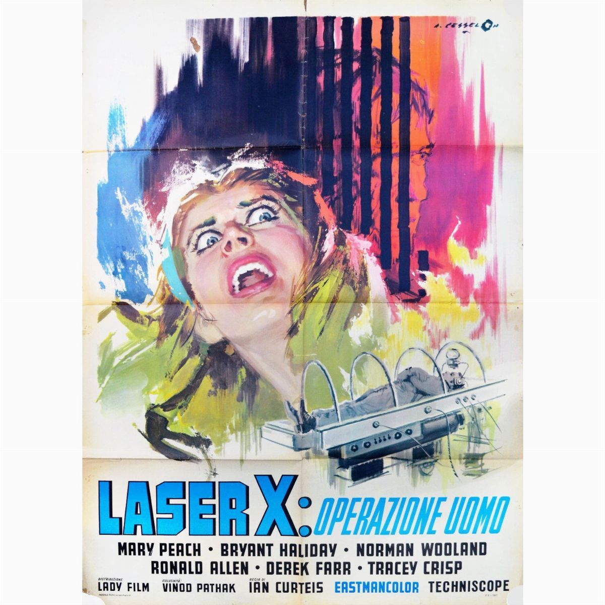 Bozzetto originale realizzato da Cesselon per la locandina ufficiale del film "Laser X: Operazione uomo", diretto da Ian Curteis con Mary Peach, Bryant Haliday e Norman Wooland nel 1966. Lievi pieghe. Firmato.